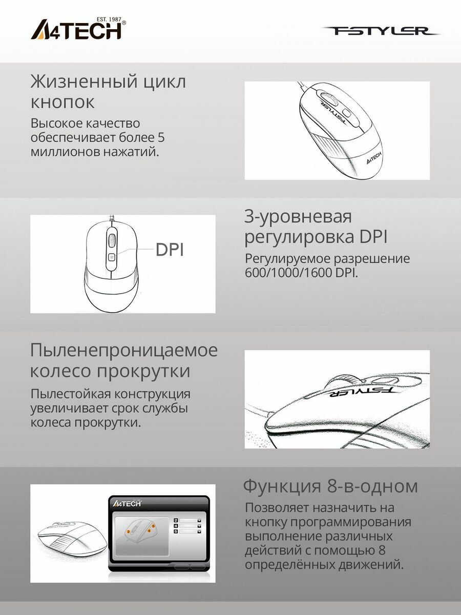 Мышь A4Tech Fstyler FM10S, белый/серый (fm10s usb white)