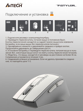 Купить Мышь компьютерная A4 Fstyler FG30, беспроводная, 2000dpi, серый/белый A4Tech 1179826