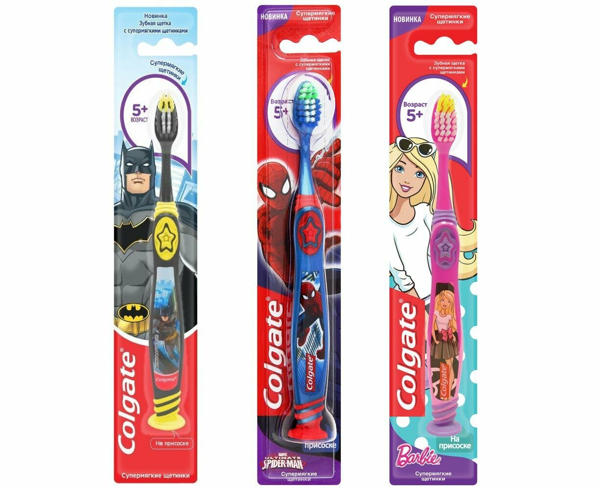 Зубная щетка Colgate "Smiles", Barbie, Batman, Spiderman, электрическая, детская