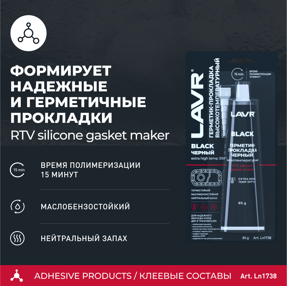 Герметик-Прокладка Черный Высокотемпературный Black Lavr Rtv Silicone Gasket Maker 85г Ln1738 LAVR арт. LN1738