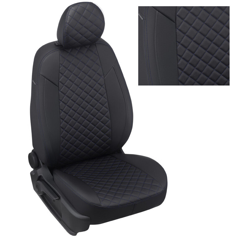 Купить Чехлы на автомобильные сидения Автопилот для Mitsubishi Pajero Sport II (рестайлинг) с 13-15г. (Экокожа ромб, Черный + Синяя строчка)