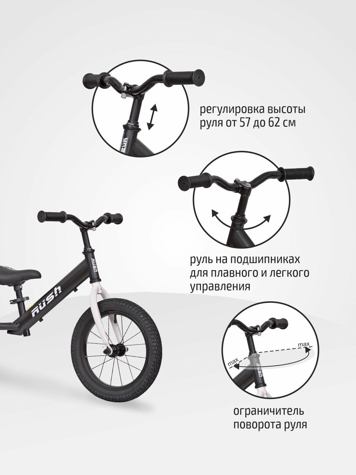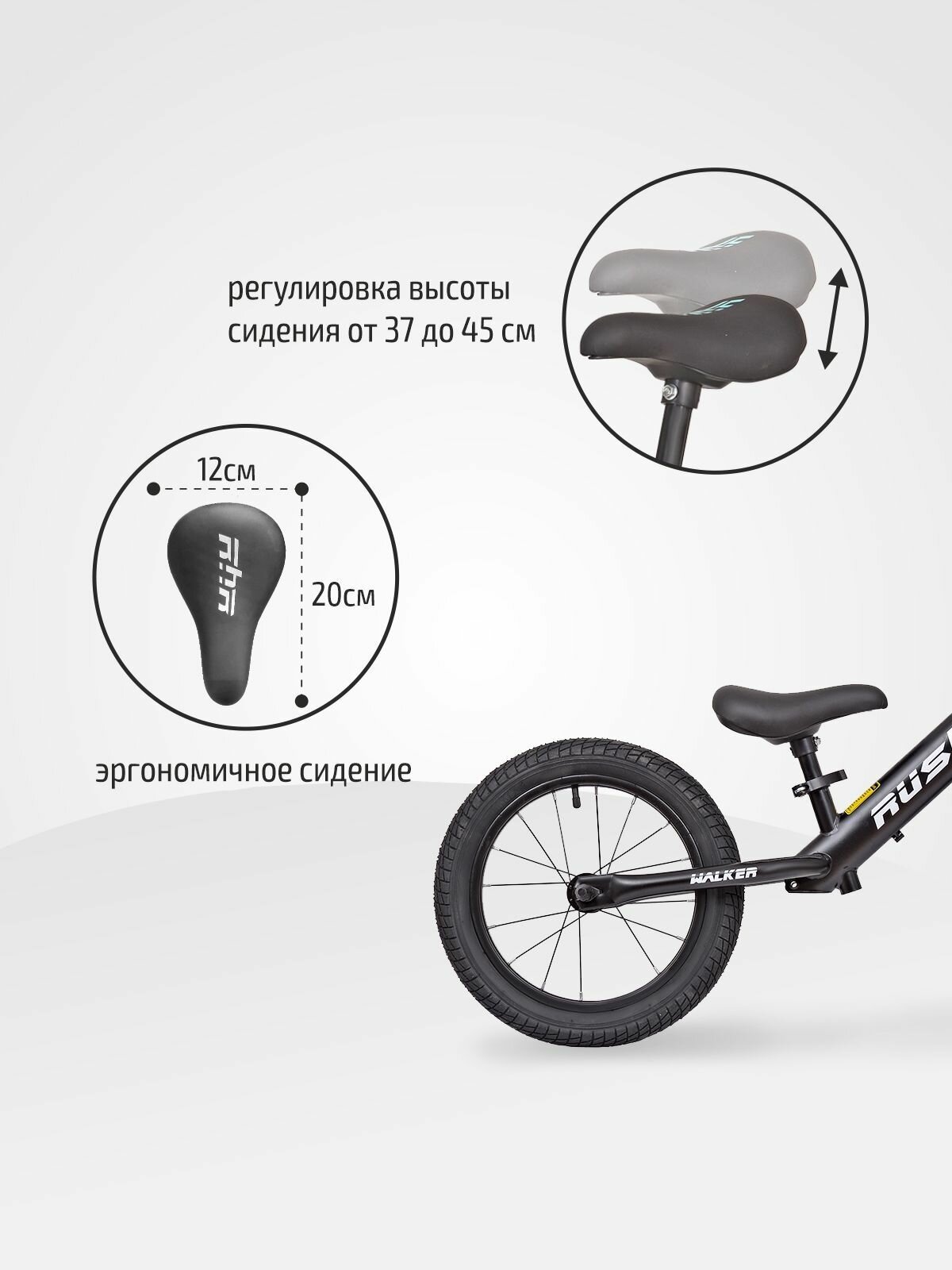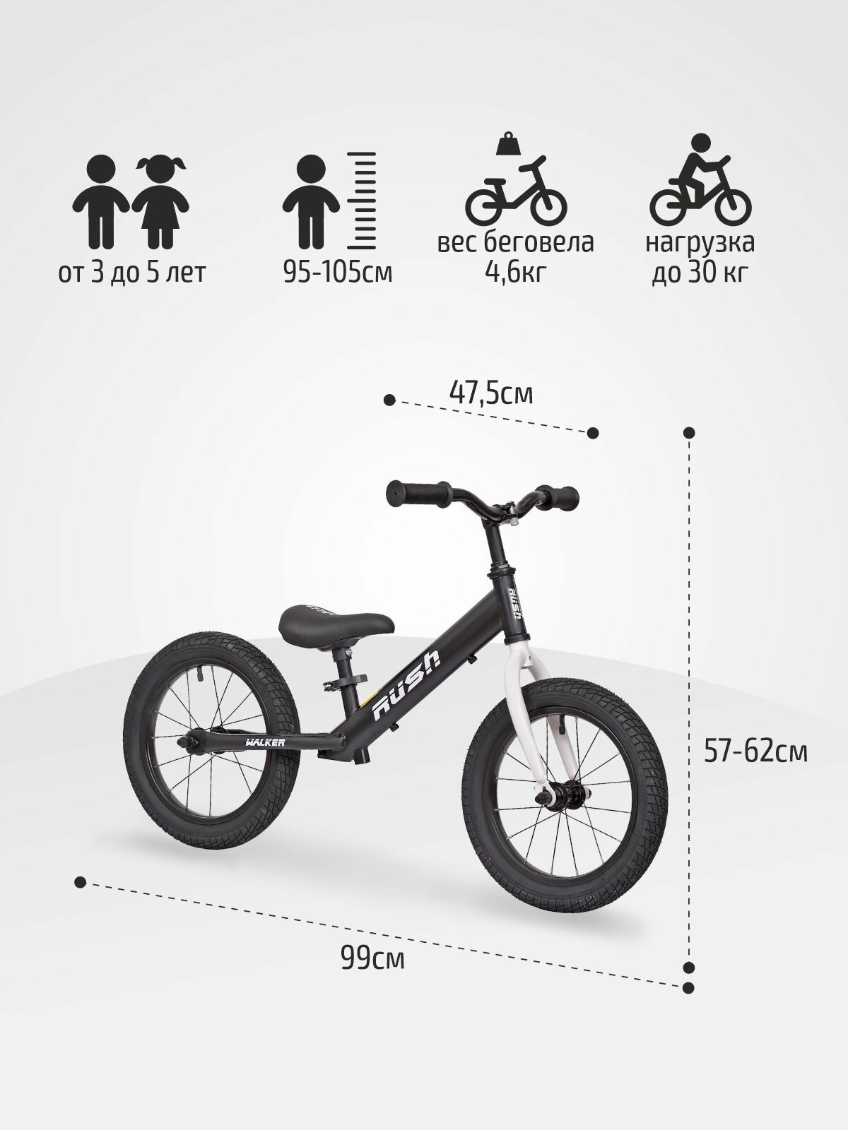 Беговел 14" RUSH HOUR WALKER рост 95-105 см черный. Детский транспорт для малышей 3, 4 года 5 лет велобег самокат без педалей толокар легкий мотоцикл