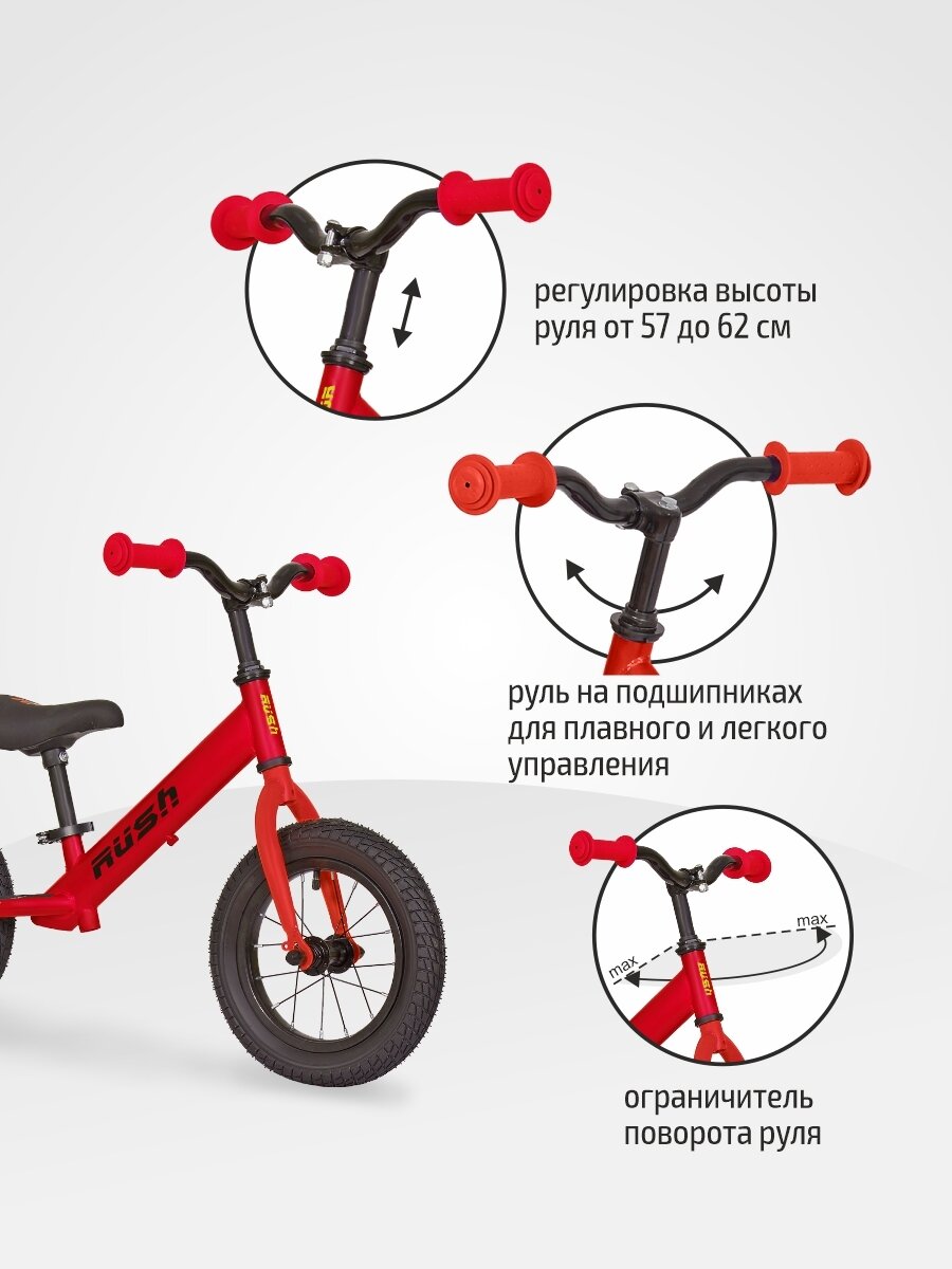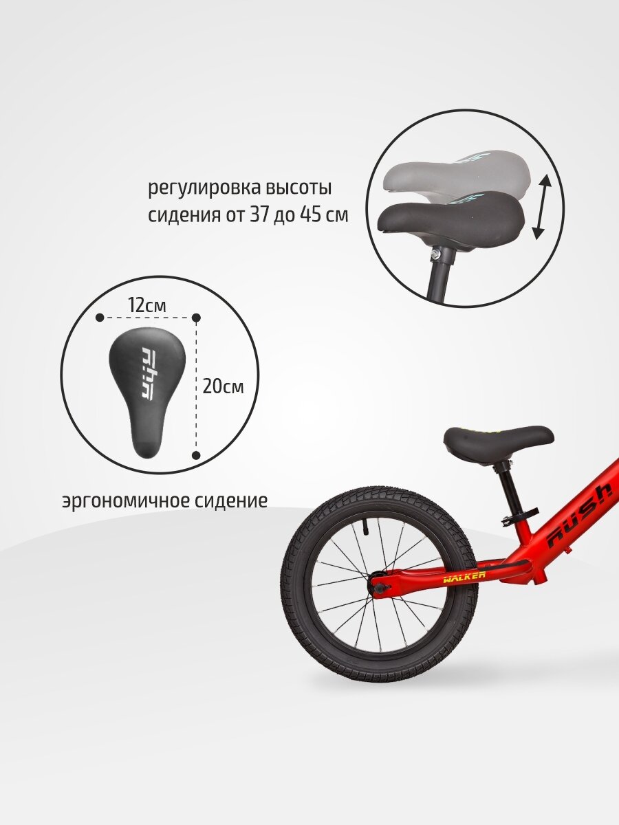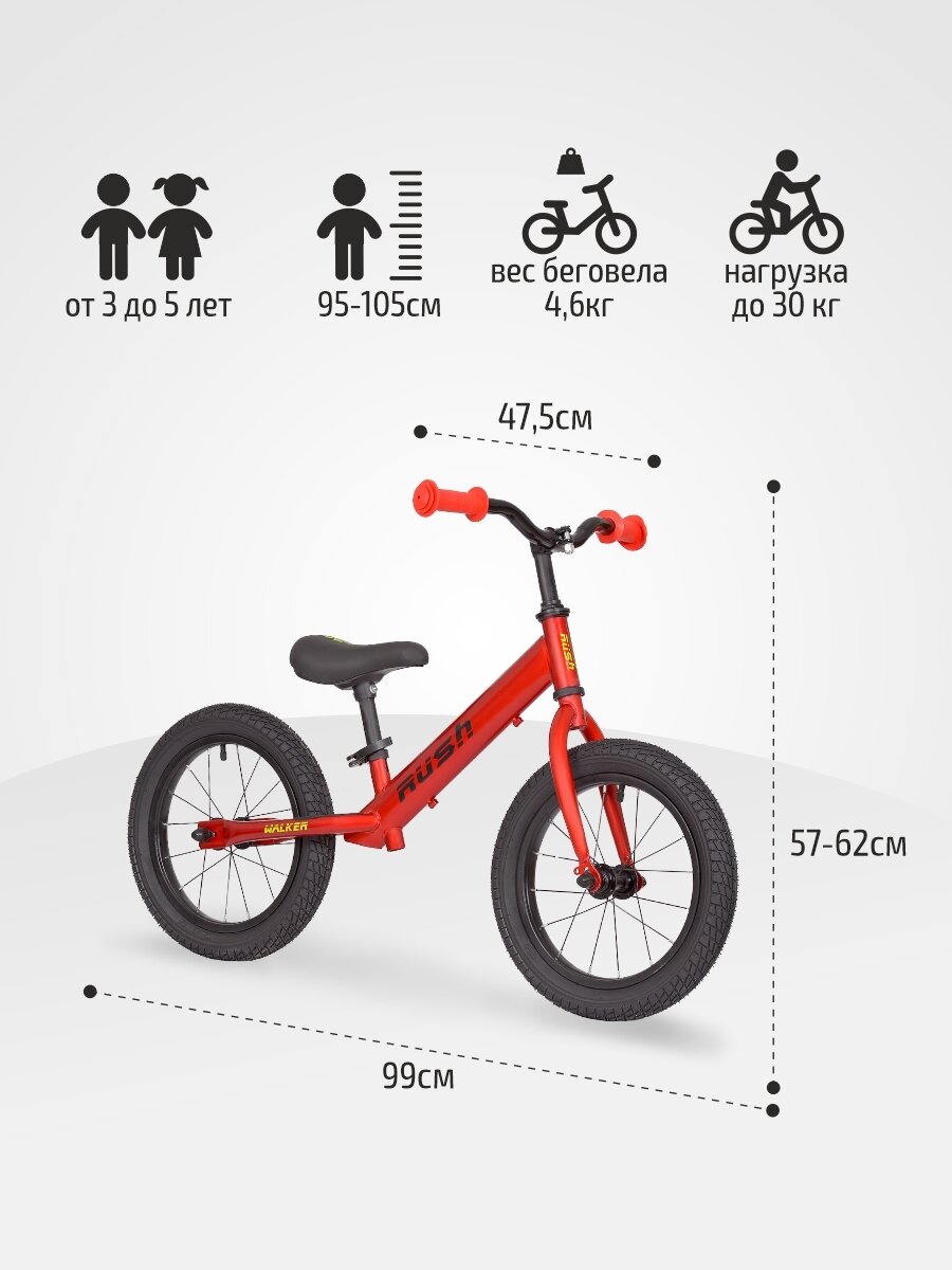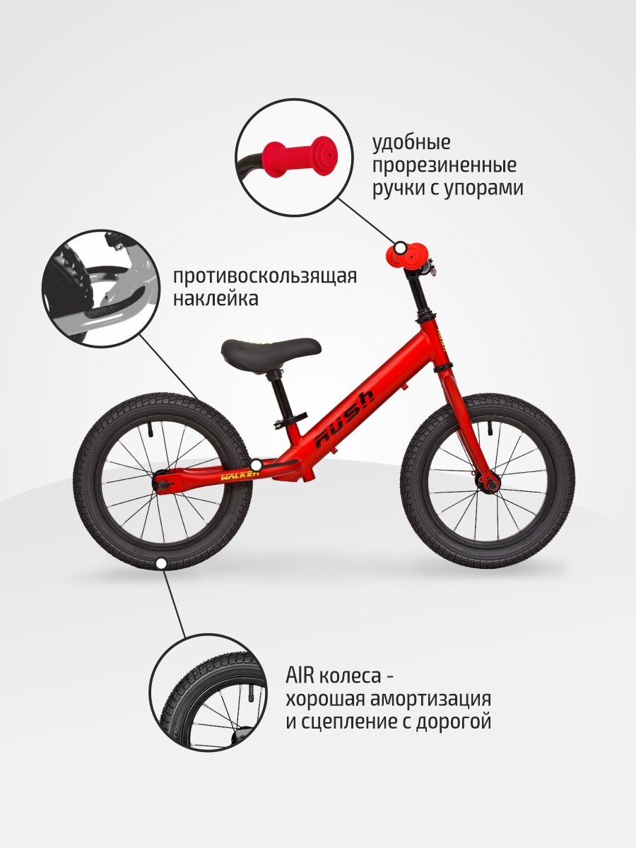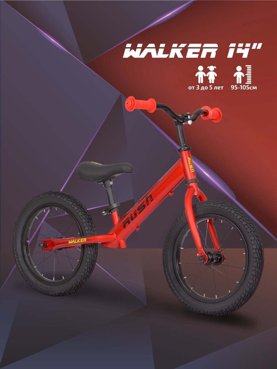 Беговел 14" RUSH HOUR WALKER рост 95-105 см красный. Детский транспорт для малышей 3, 4 года 5 лет велобег самокат без педалей толокар легкий мотоцикл