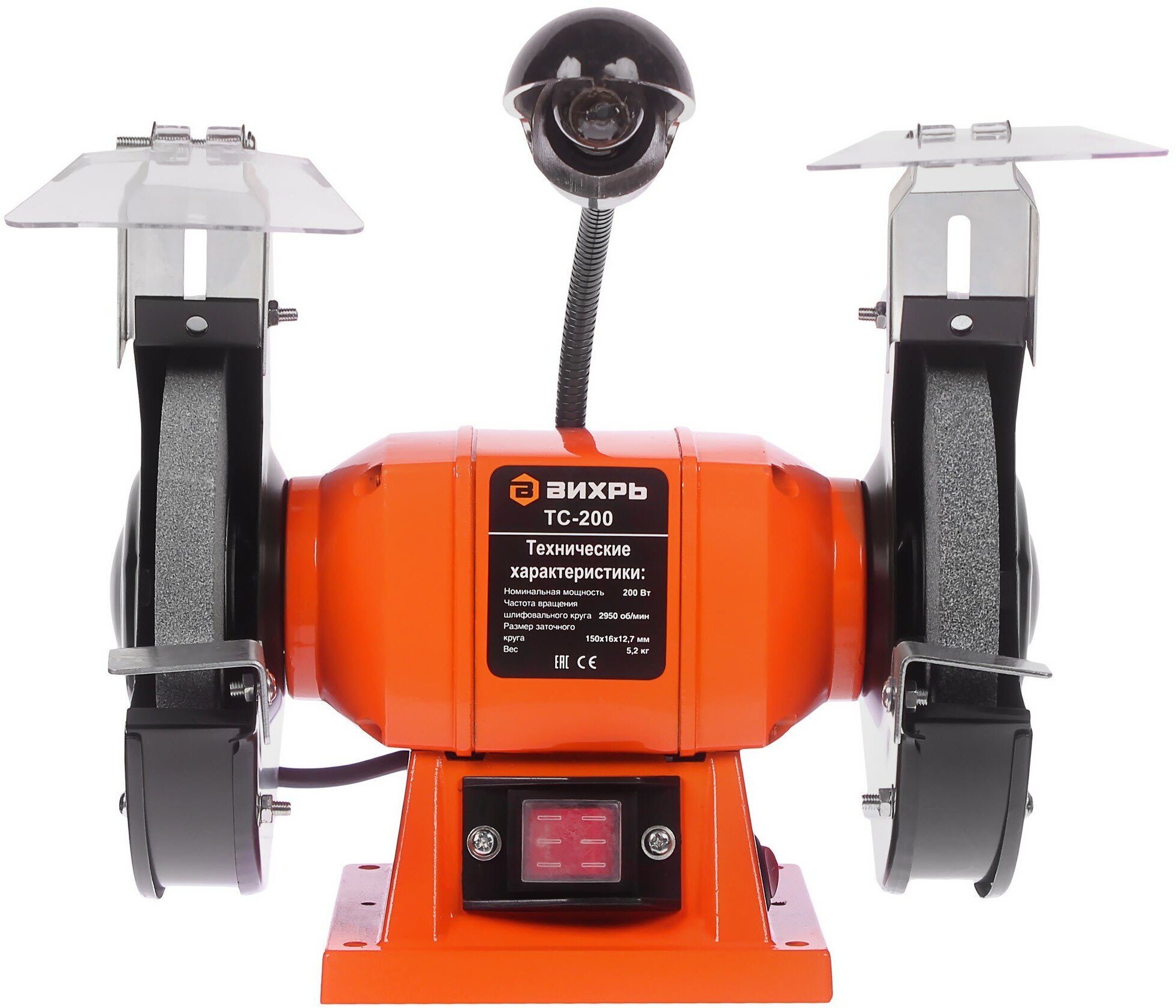 Точильный станок, 200 Вт, 2950 об/мин, круг 150х16 мм, подсветка, защитный экран, вихрь ТС-200 72/7/2, 671124