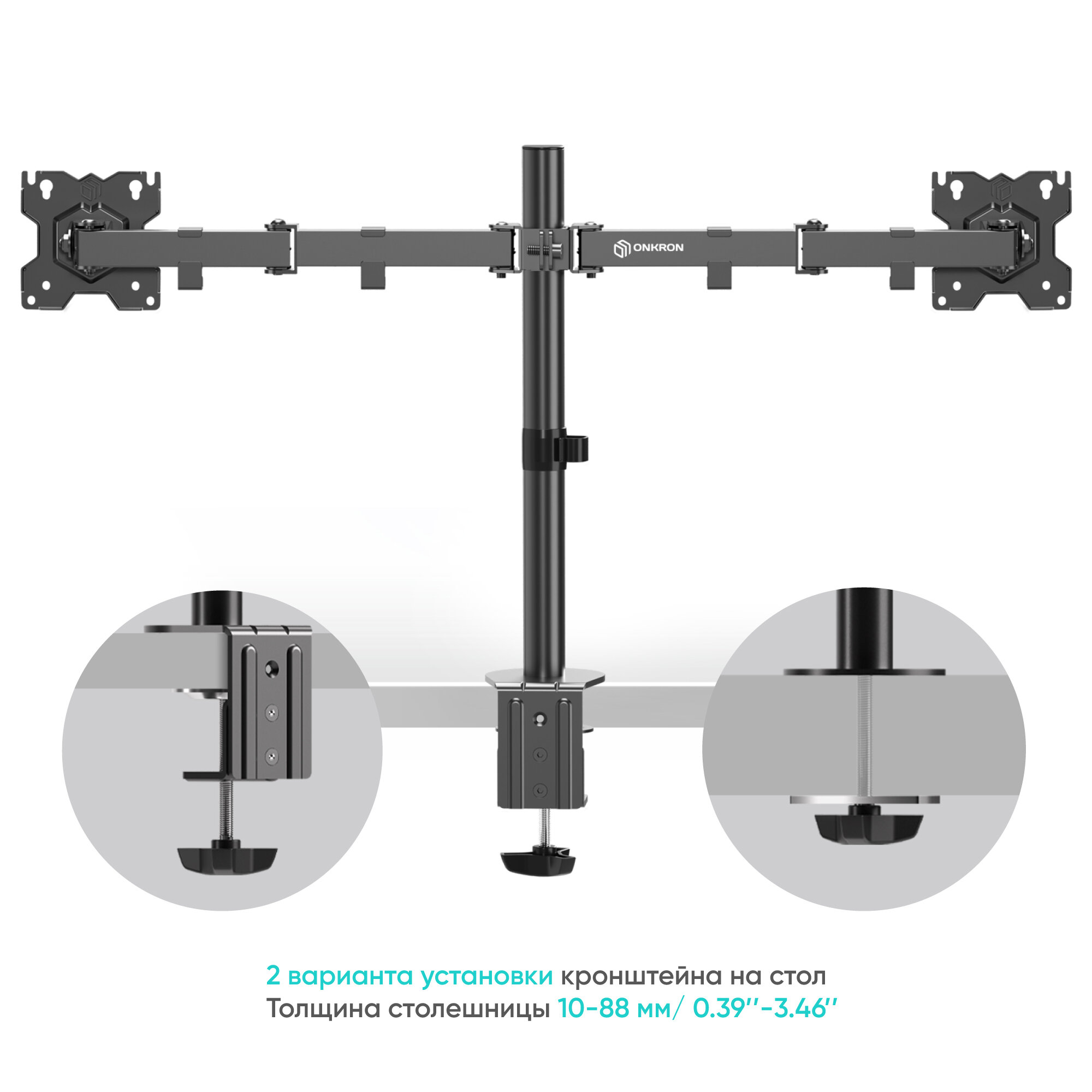 ONKRON кронштейн для двух мониторов 10"-32" настольный, чёрный D221E
