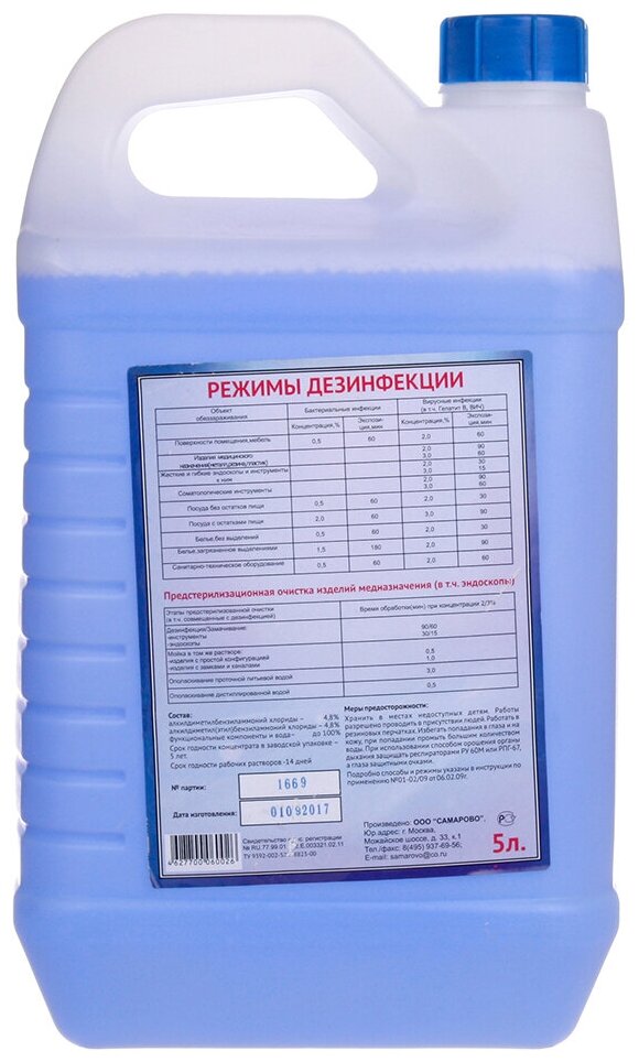 Средство дезинфицирующее 1 л, комплект 5 шт., самаровка, концентрат