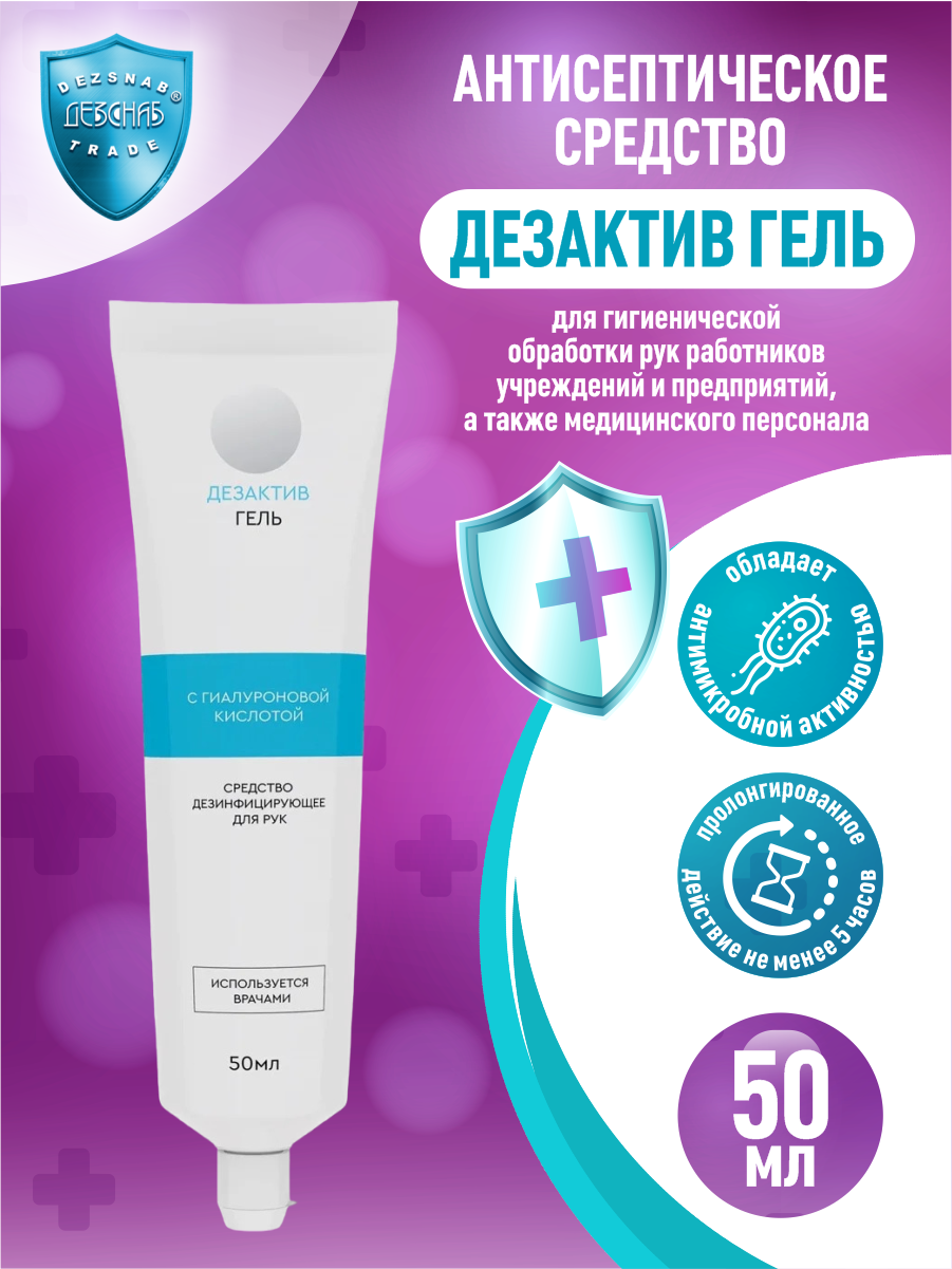 Дезактив-Гель, средство дезинфицирующее для рук с гиалуроновой кислотой, 50 мл