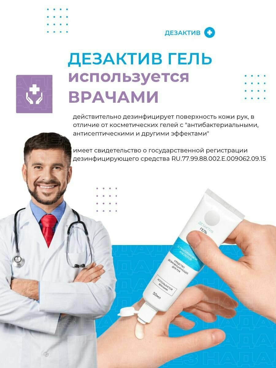 Дезактив гель - дезинфицирующий гель для рук, антисептик без эффекта липкости 50 мл 3 шт