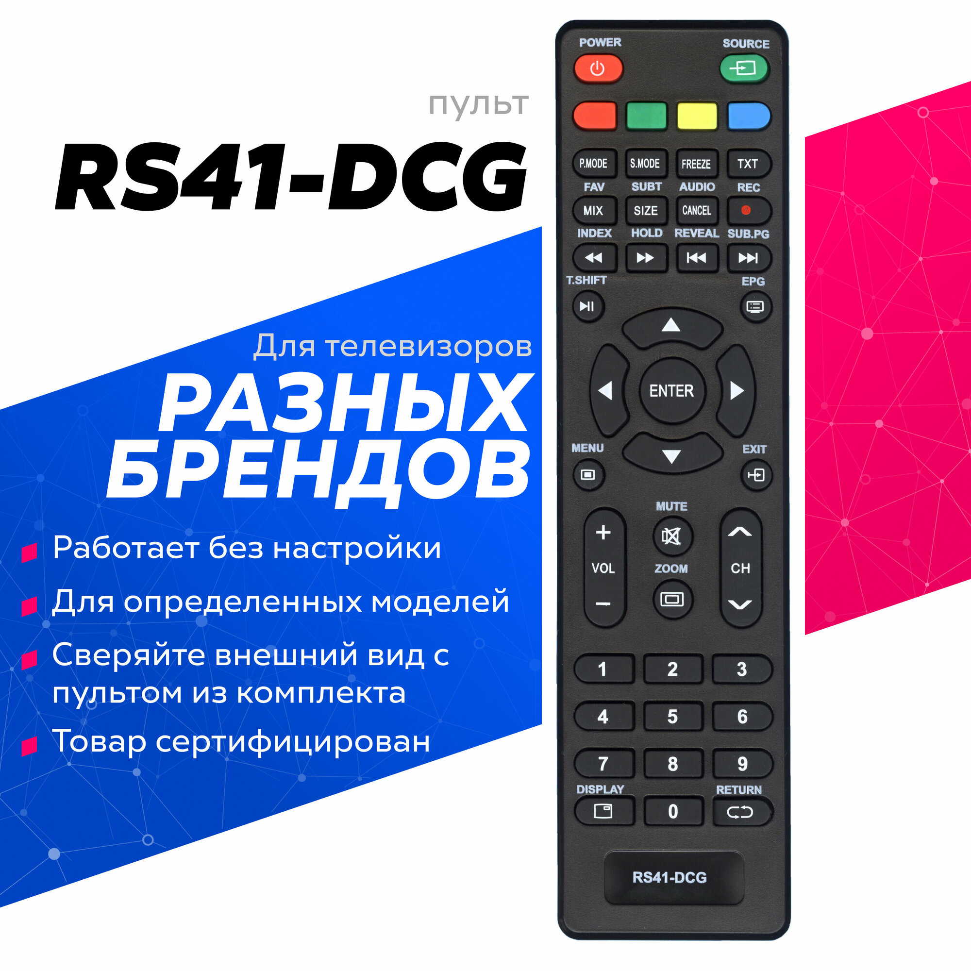 Пульт ДУ RS41-DCG, Для ТВ, универсальный, черный
