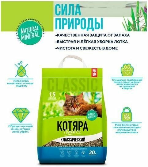 Котяра Наполнитель минеральный комкующийся "Котяра", классический, 20 л