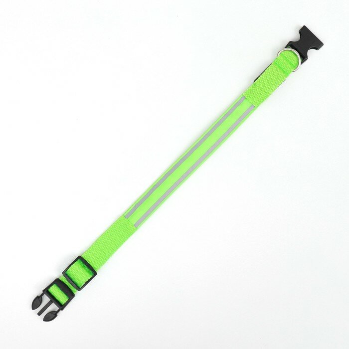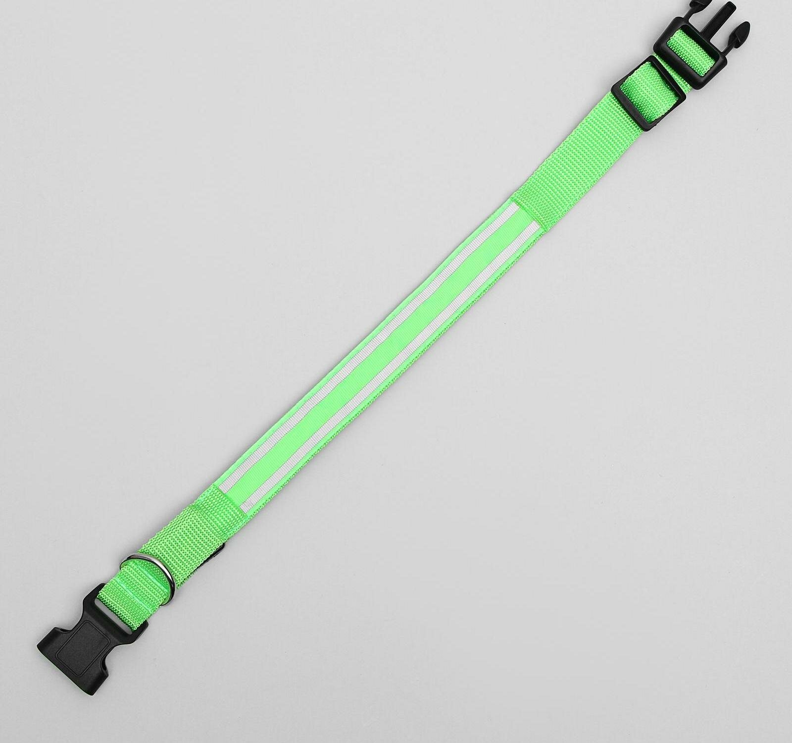 Купить Ошейник с подсветкой и 2 светоотражающими полосами, 38-40 см, 3 режима свечения, зелёный (1 шт.)