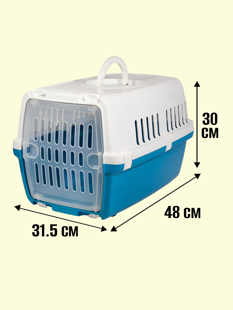 Переноска Savic для животных, ZEPHOS-1 голубая/белая с пластик. дверкой 48х31,5х30см