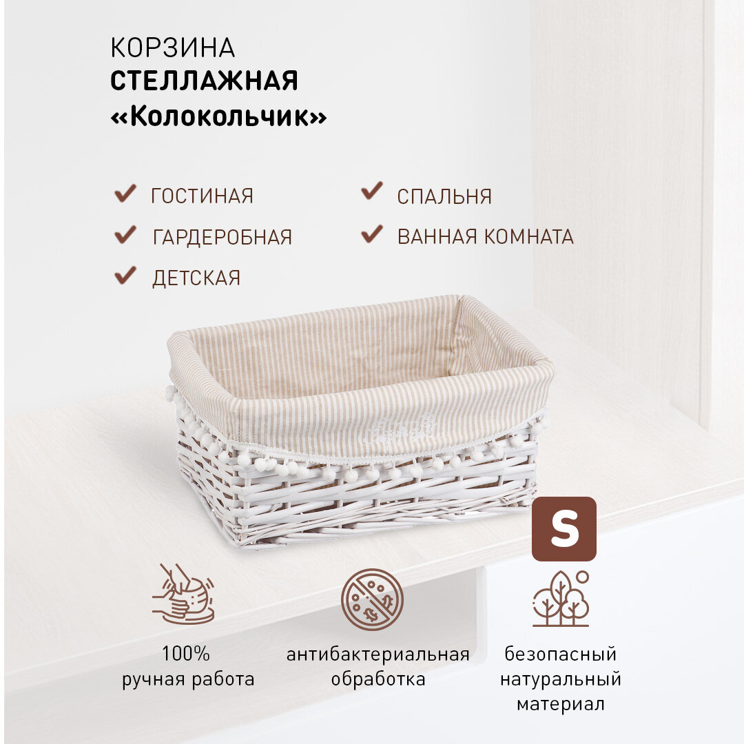 Корзина Natural House стеллажная "Колокольчик" 28х19х13 см, белый (EW-31 XS)