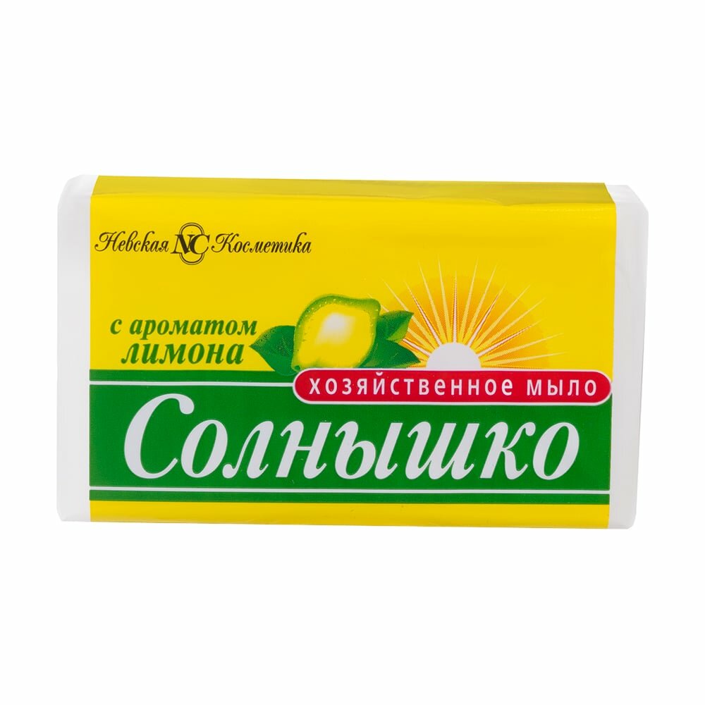 Мыло кусковое хозяйственное Невская Косметика "Солнышко" с ароматом лимона, 140г, 1шт. (11141)