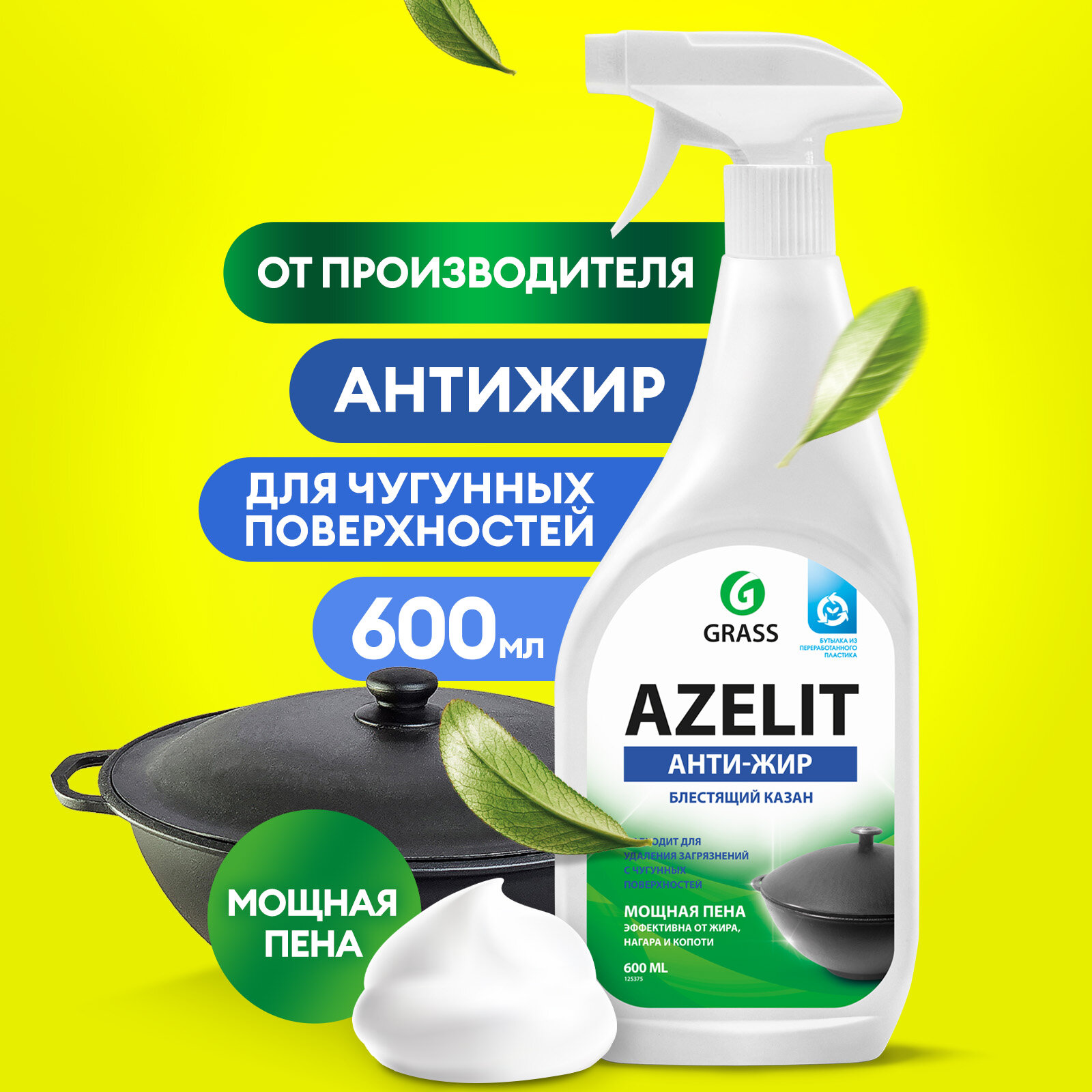 Антижир Азелит Grass Azelit казан средство для кухни бытовая химия анти жир 600 мл