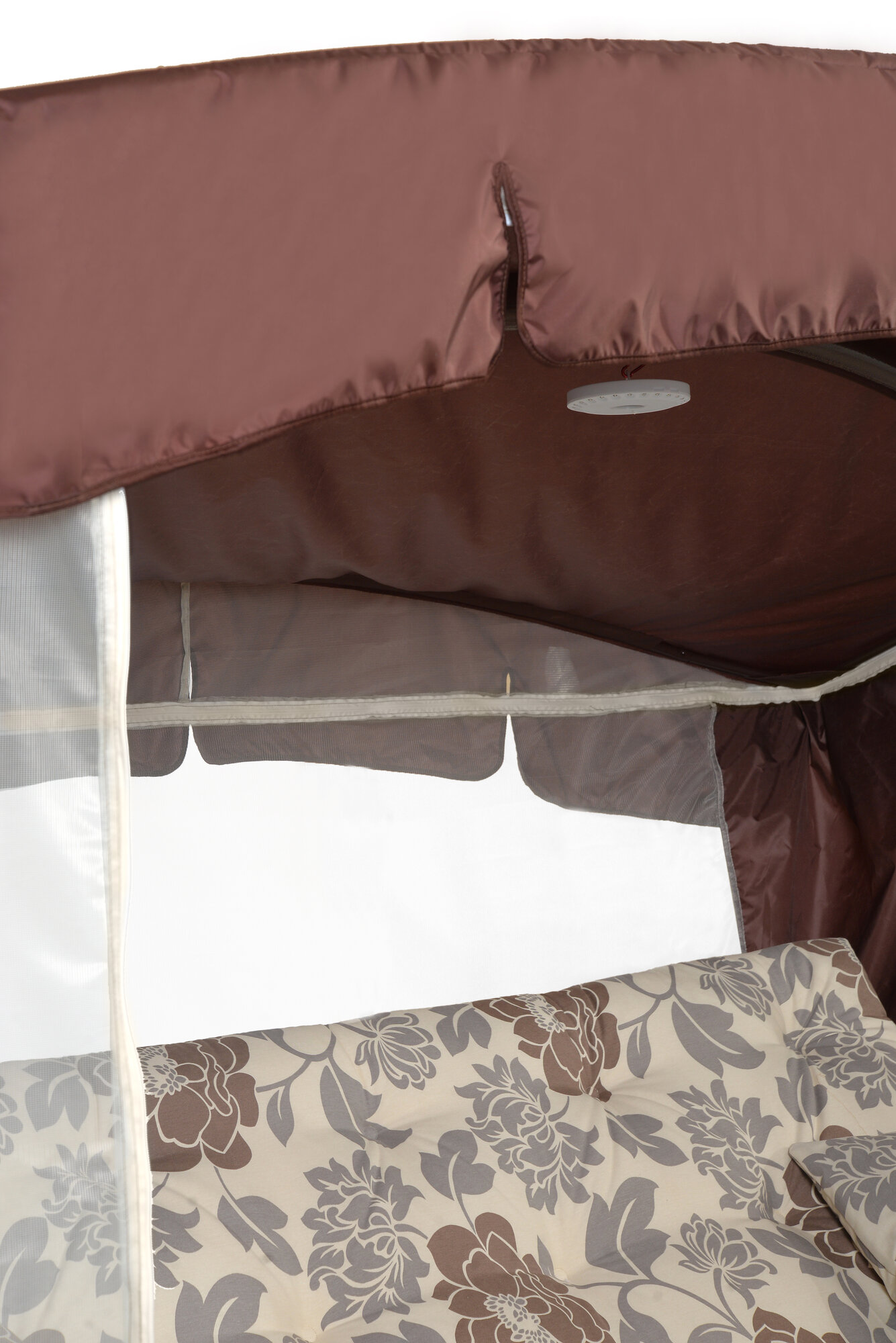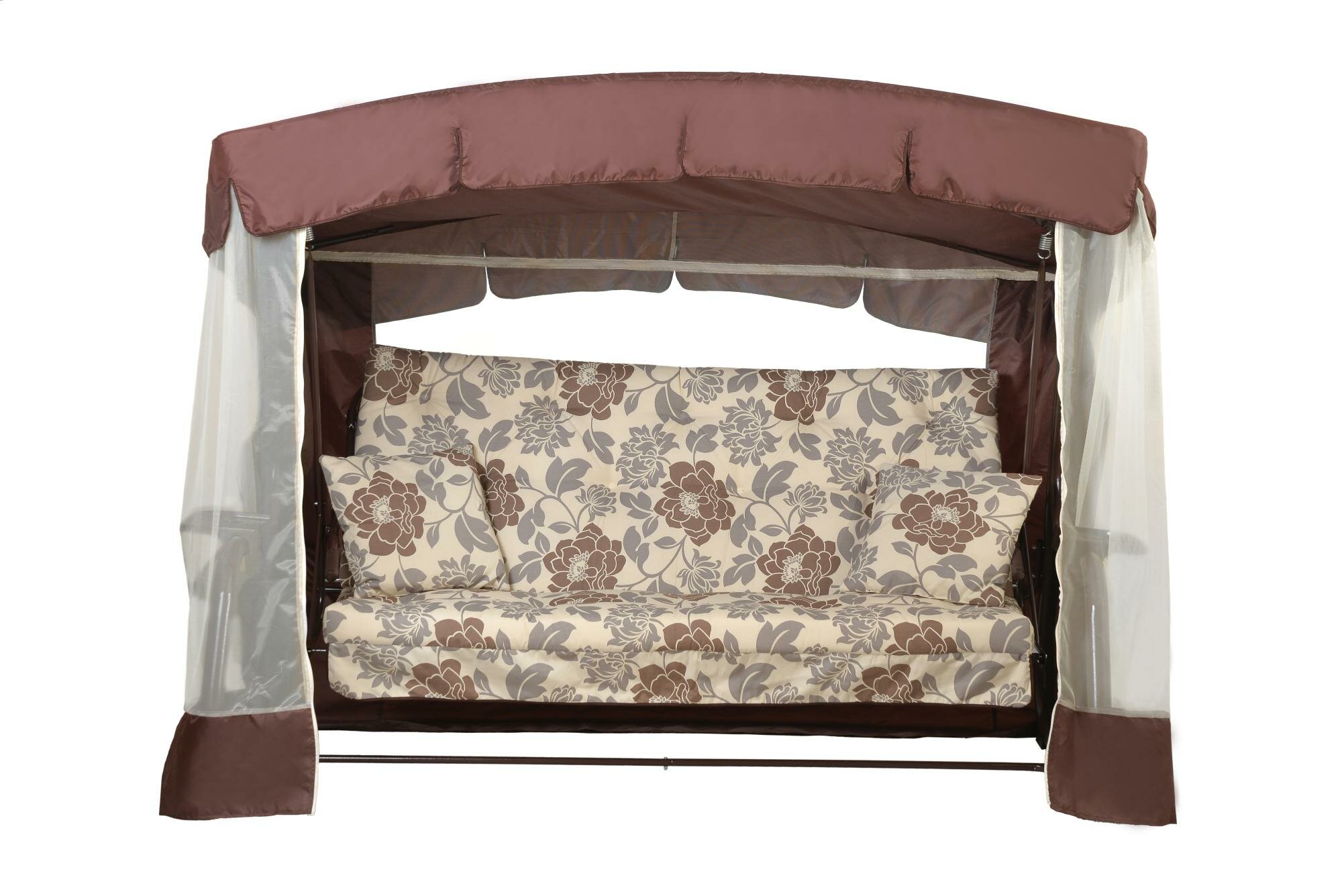 Качели садовые 4-х местные Ольса Шатер ткань панама каркас коричневый, ткань полоска бежево-коричневная