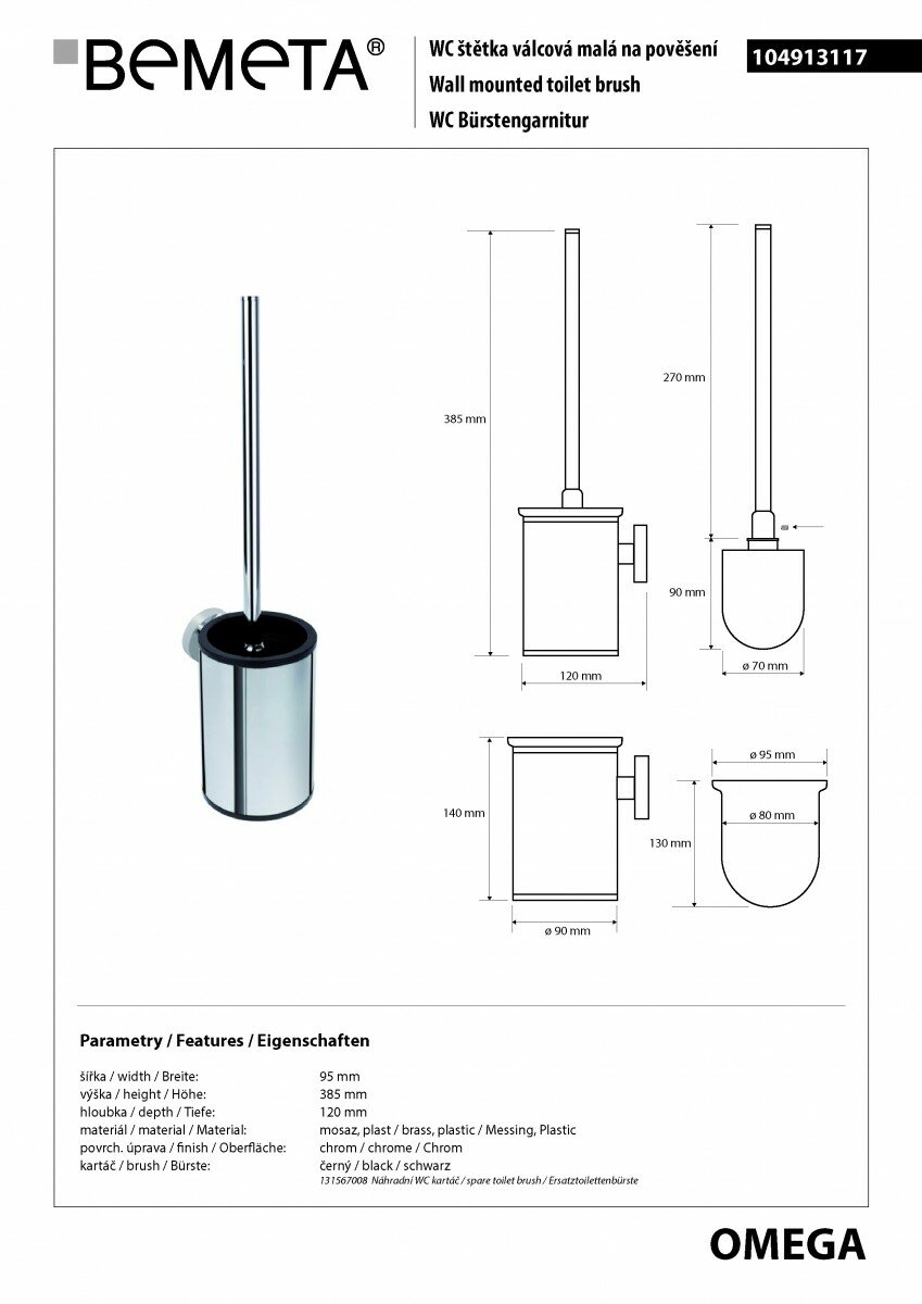 Подвесной ершик Bemeta Omega черная щетка 104913117 .