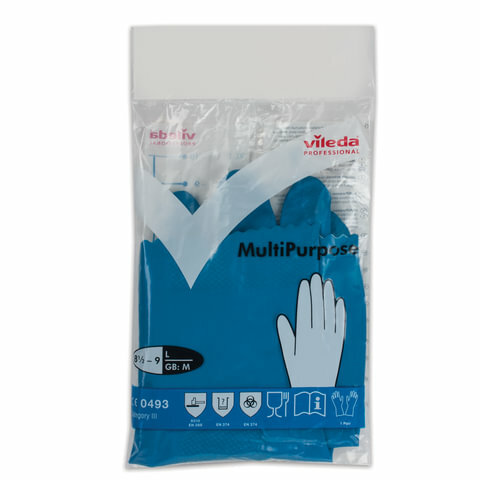 Перчатки латексные Vileda MultiPurpose, синие, размер 8 (М), 1 пара (100753)