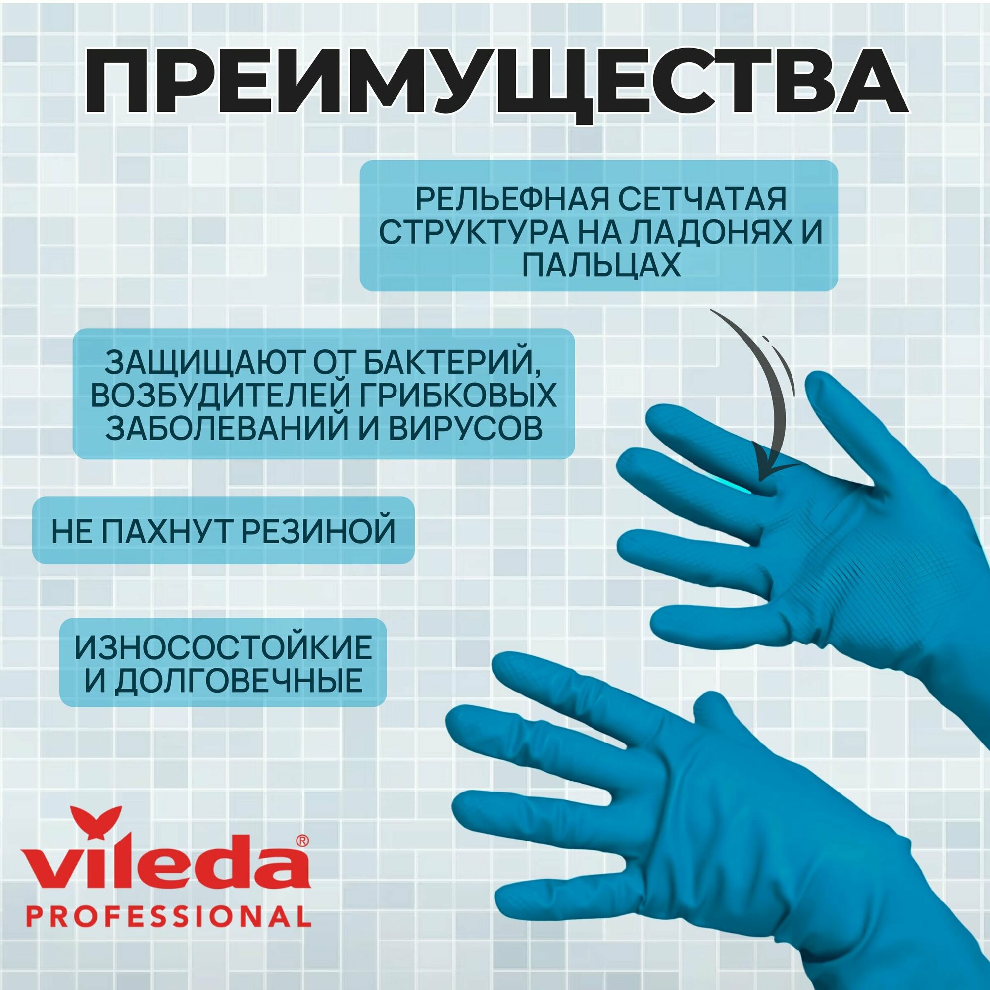Перчатки Vileda Professional Многоцелевые, латексные, 1 пара, размер M, цвет синий