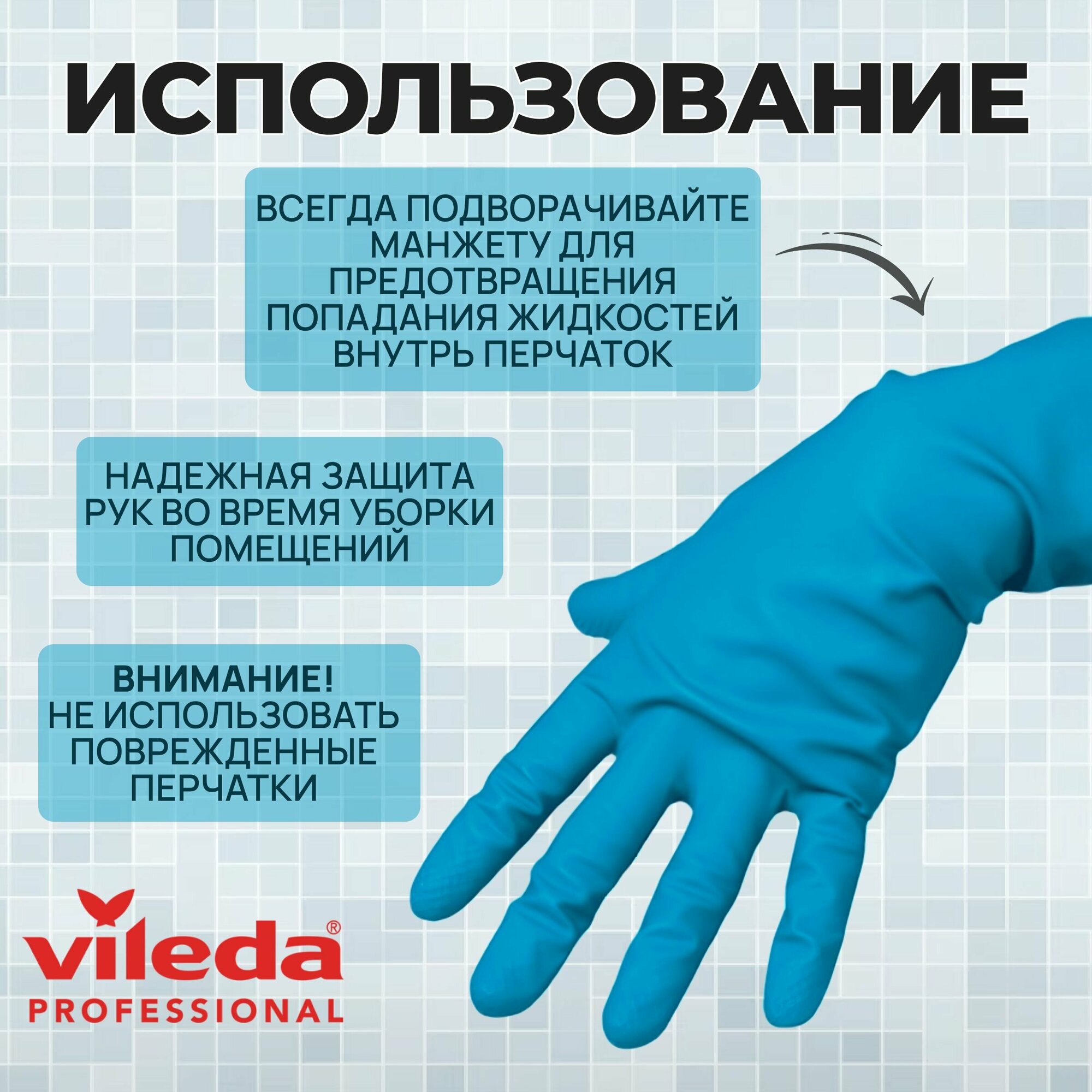 Перчатки латексные хозяйственные Vileda Professional для уборки универсальные Многоцелевые, голубые, размер L, 100754