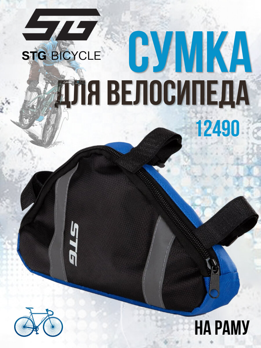 Велосумка 12490 с креплением под раму треугольная, вместимость 1.2 л, размер L Цвет Чёрный/Синий STG Х88293