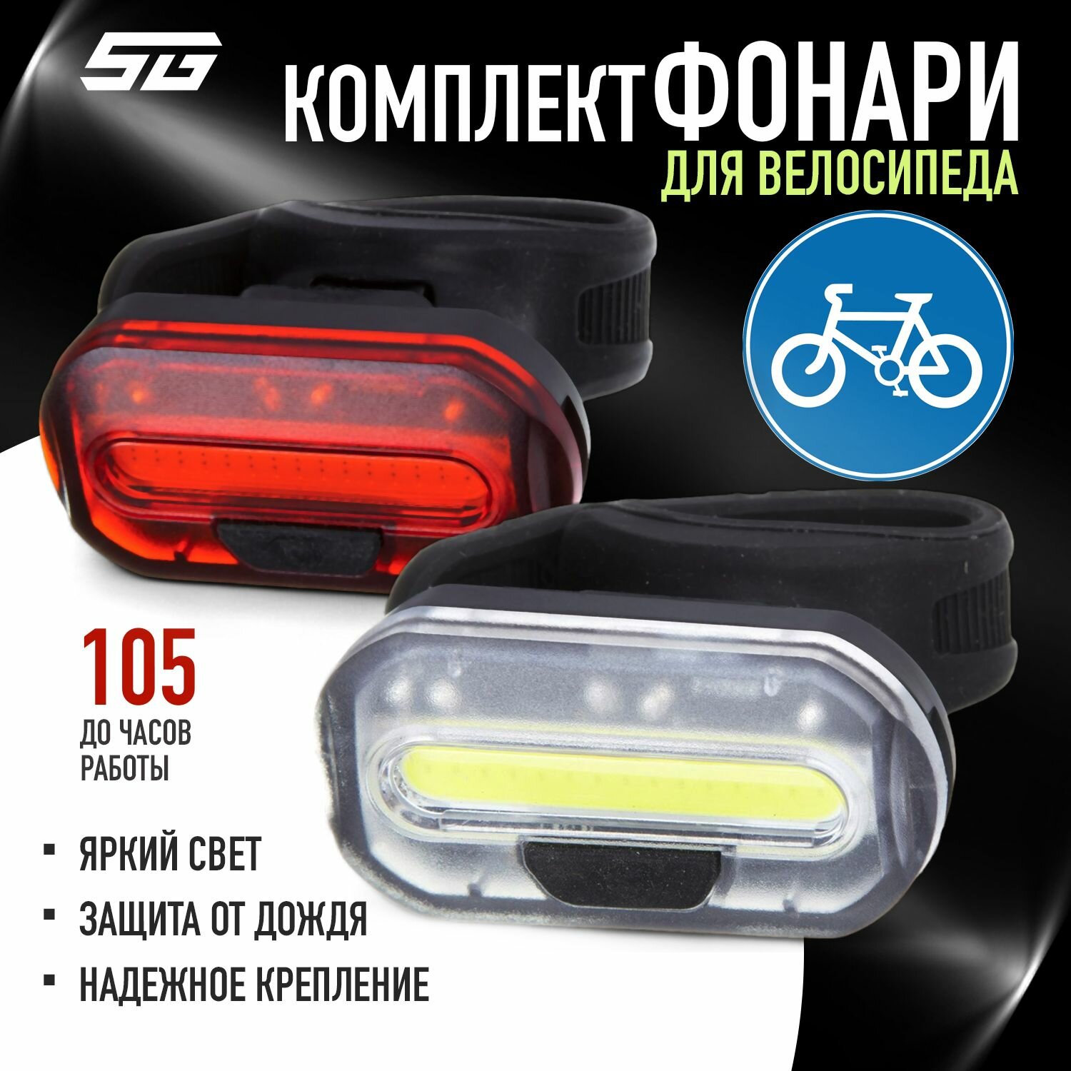 Купить Комплект фонарей велосипедных STG,JY-6068, задний+передний, резин. Хомут. Бат: (2 *CR2032) черный