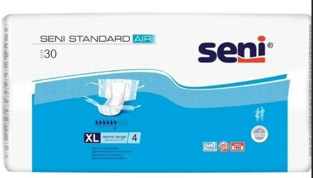 Подгузники для взрослых Seni Standart Air (Сени Стандарт Эир) - XL (Extra large), объем талии 130-175 см, 6 капель, дневные и ночные, 30 штук