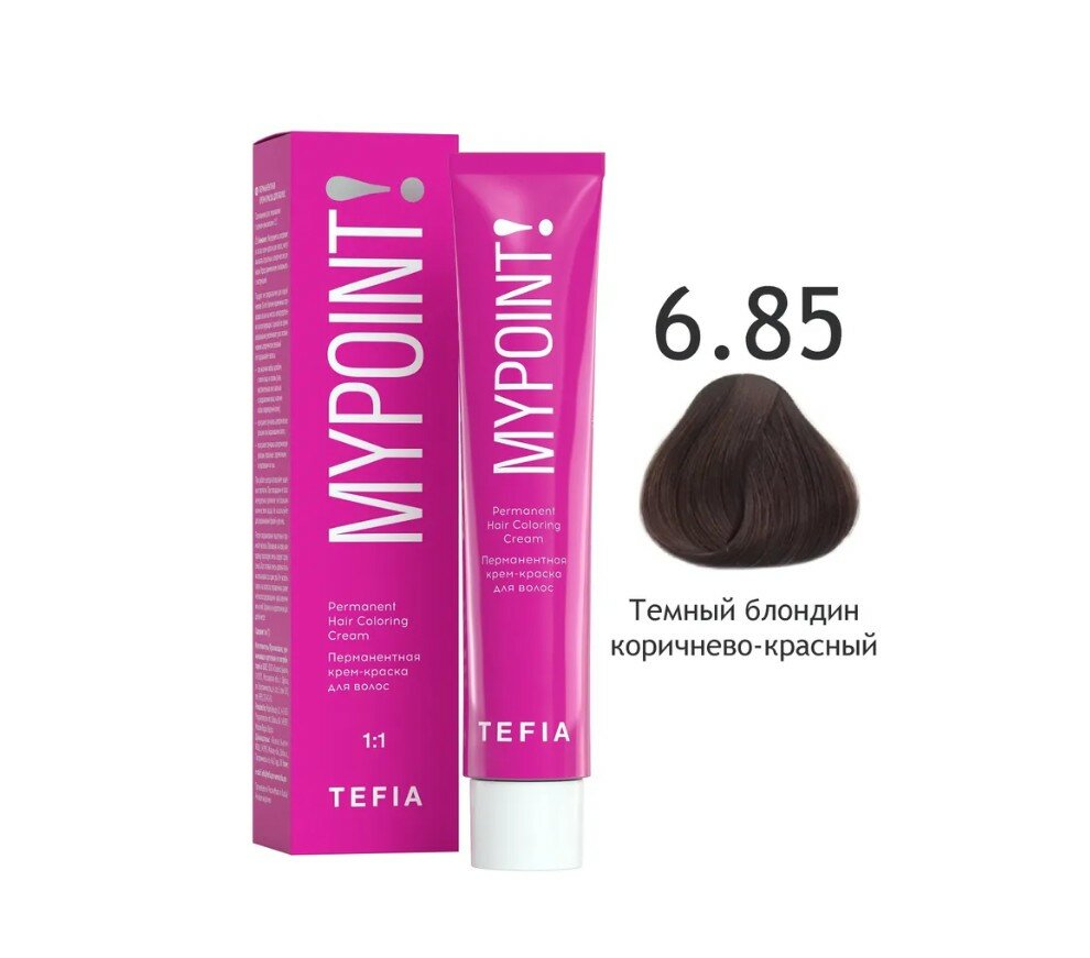 Купить TEFIA Mypoint 6.85 Перманентная крем-краска для волос / Темный блондин коричнево-красный, 60 мл