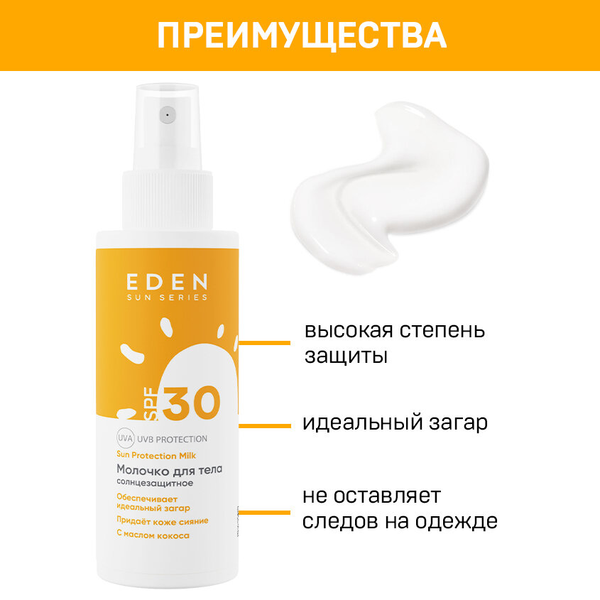 Молочко солнцезащитное SPF30 EDEN Sun Series, 150мл 10500708