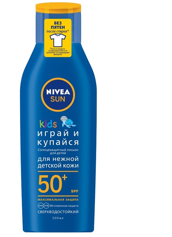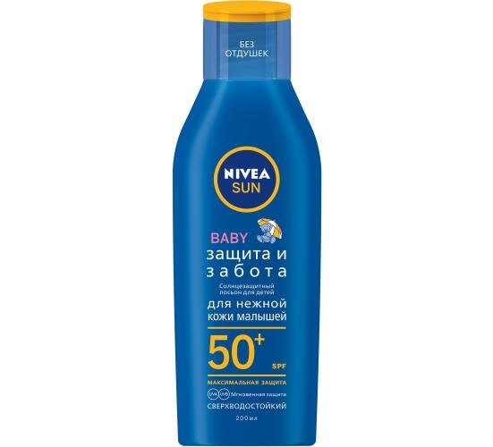 Солнцезащитный лосьон для детей Nivea Защита и забота сверхводостойкий, SPF 50+, 200 мл интересное: