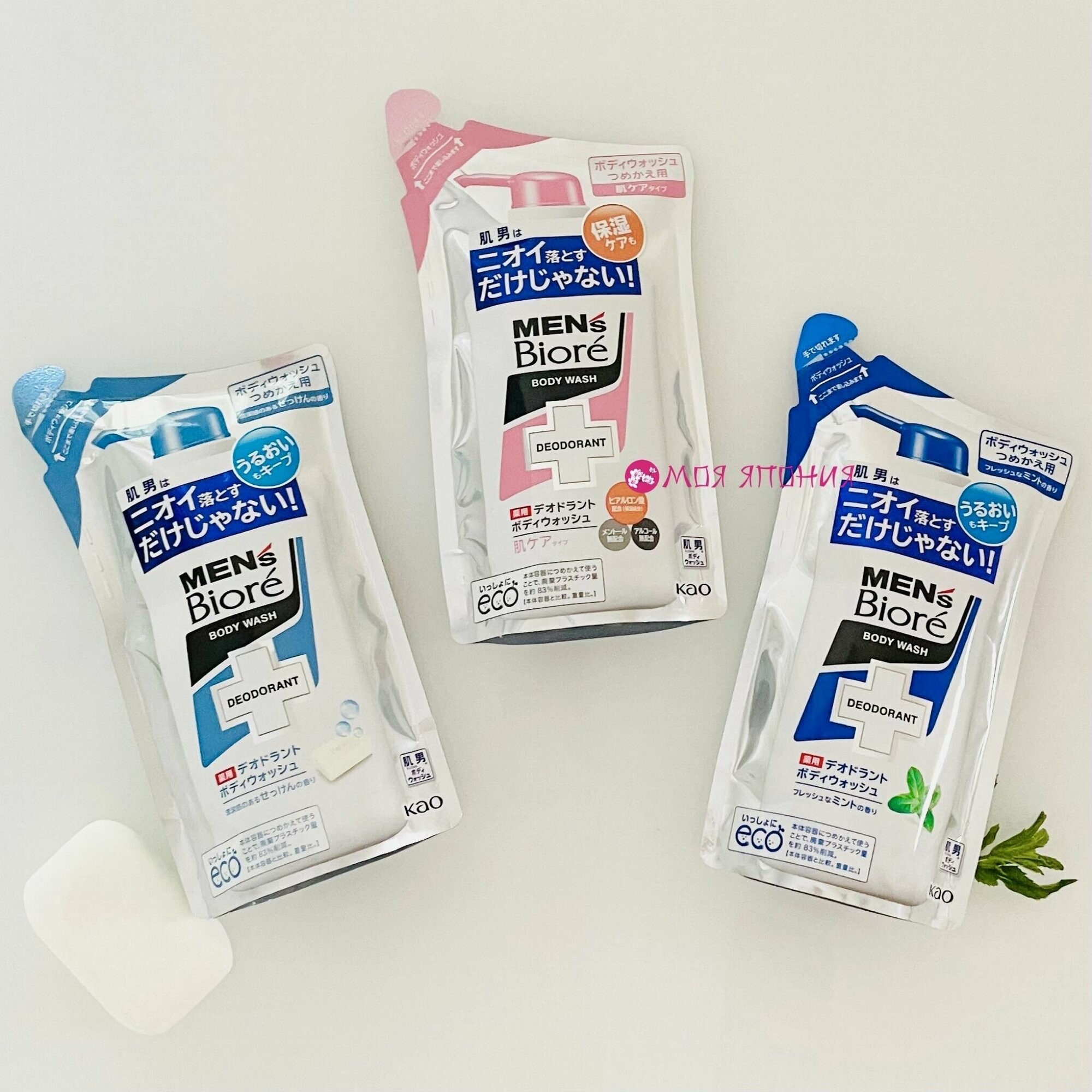 KAO Гель для душа Mens Biore Противовоспалительный мужской аромат полевых цветов 380 мл мягкая упаковка