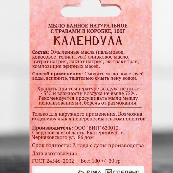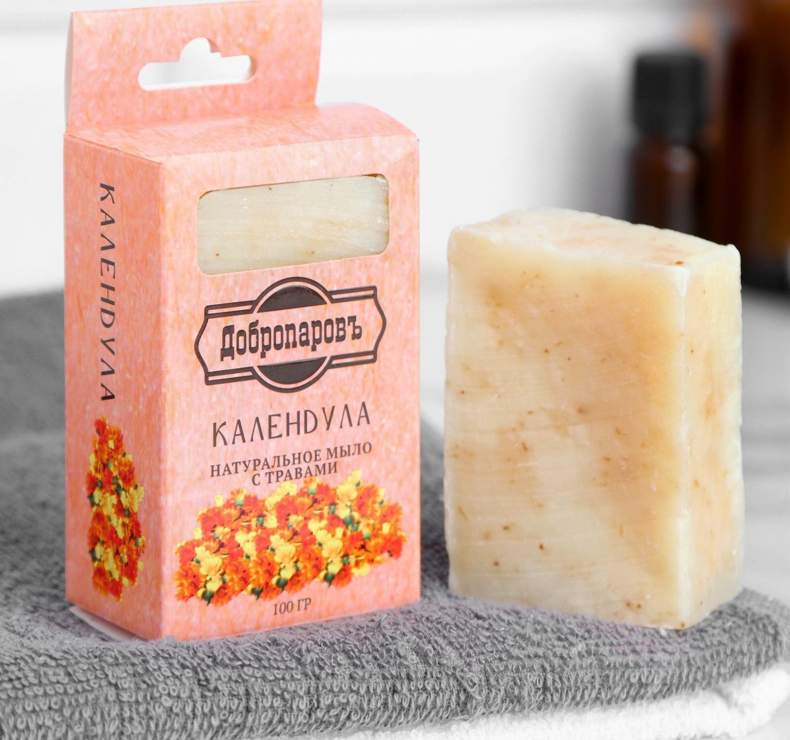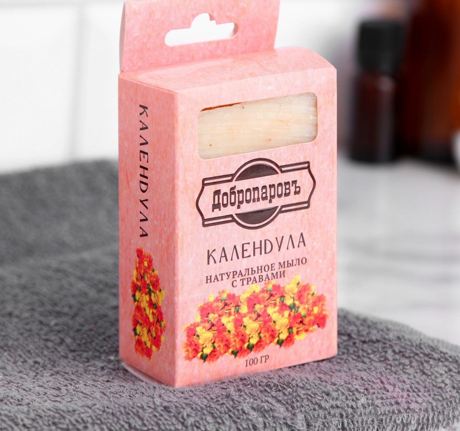 Мыло банное натуральное с травами в коробке "Календула" 100 г Добропаровъ интересное: