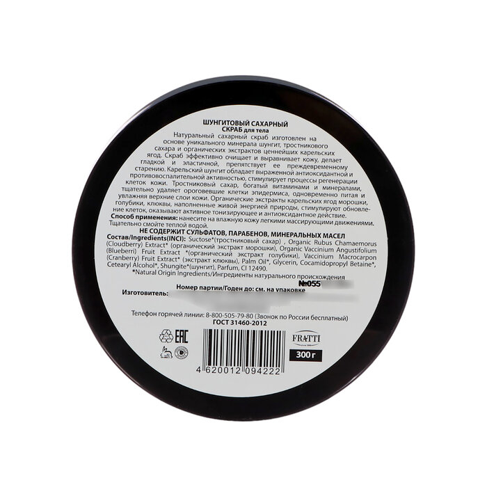 Шунгитовый Сахарный скраб для тела, 300 г.