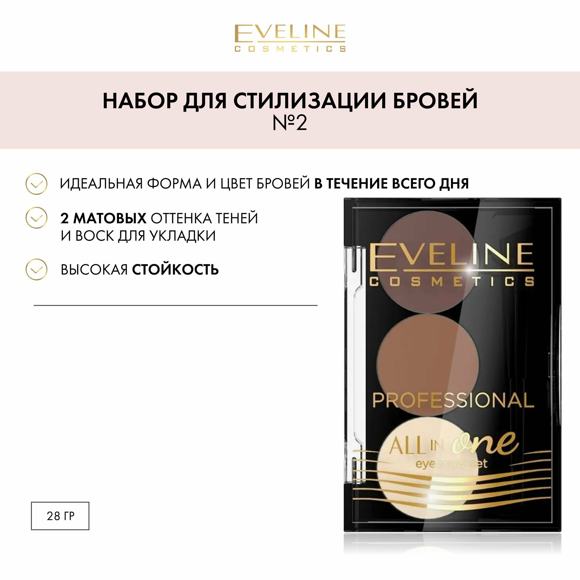 Набор для бровей `EVELINE` ALL IN ONE тон 02