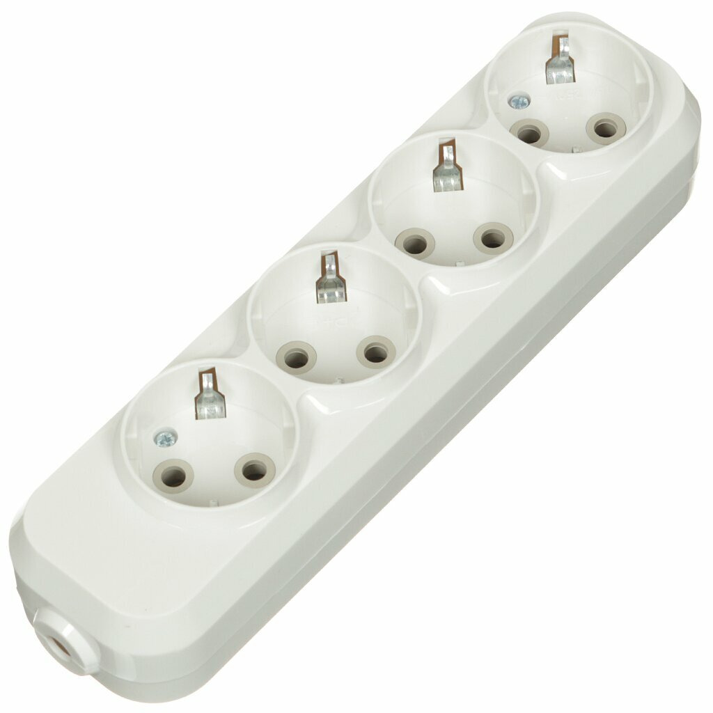 Купить Колодка розеточная 4 гнезда 2П+3 16А 250В белая серии "Народная"