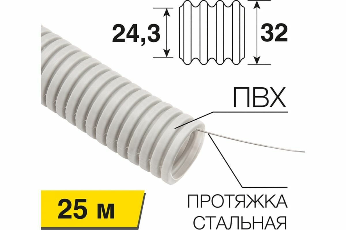 Труба гофрированная из ПВХ с зондом d 32 мм серая 25 м REXANT