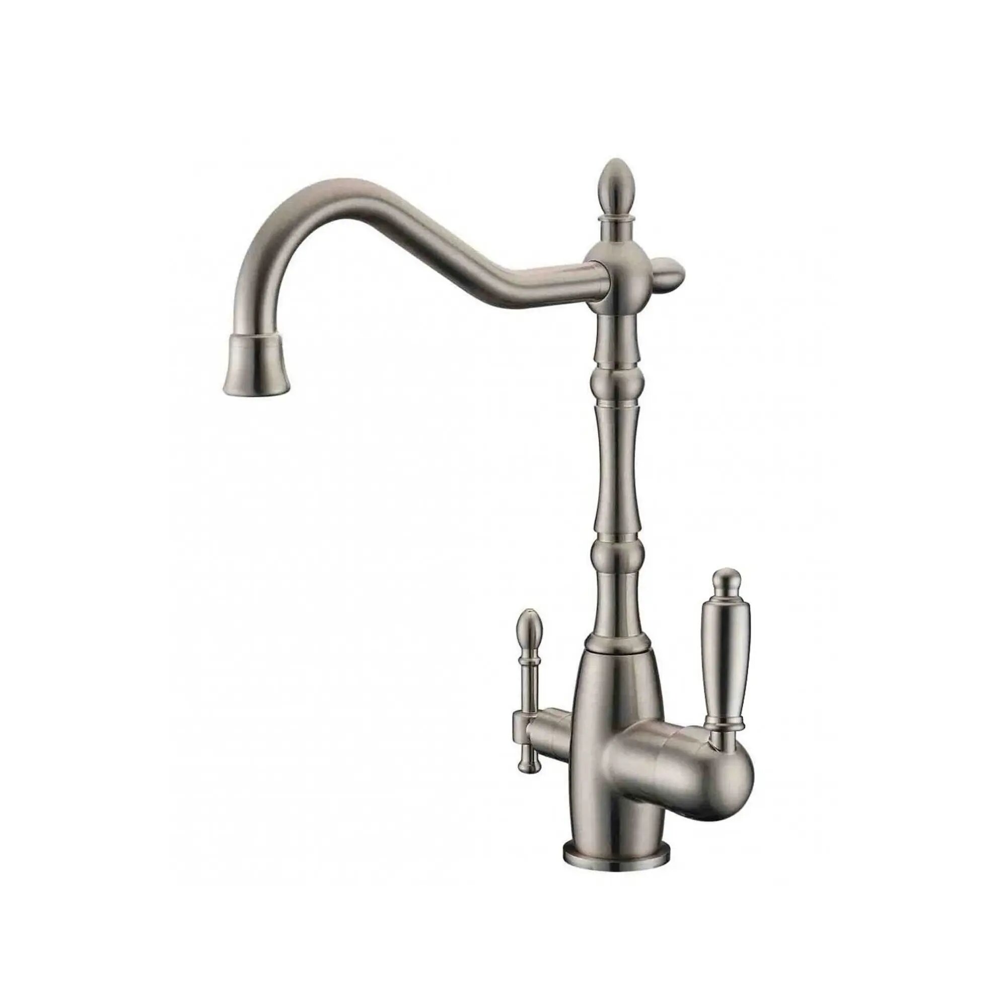 Смеситель под фильтр ZorG ZR 312 YF-33-NICKEL ретро, сатин никель матовый, поворотный, высокий, ручки металл, для кухни