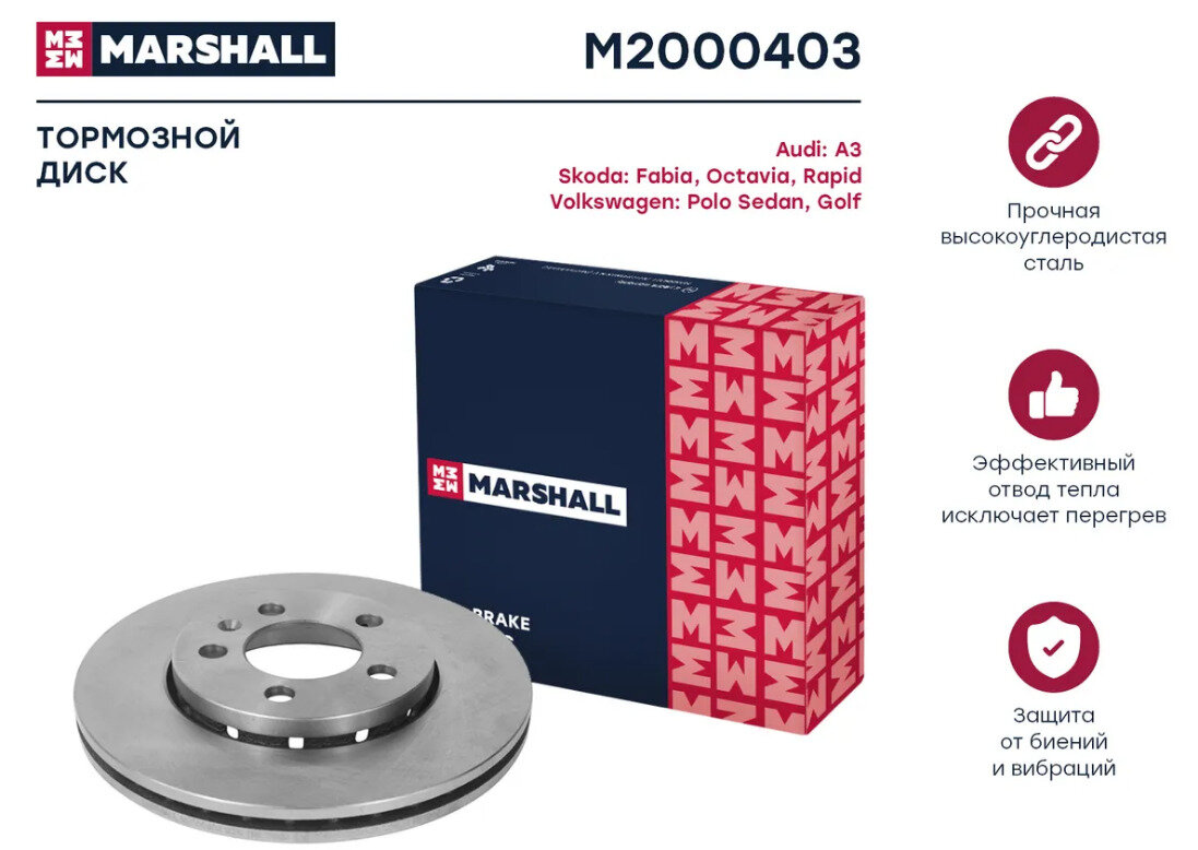 MARSHALL M2000403 Тормозной диск передн. Audi: A3 , Skoda: Fabia, Octavia, Rapid, VW: Golf, Polo MARSHALL M2000403