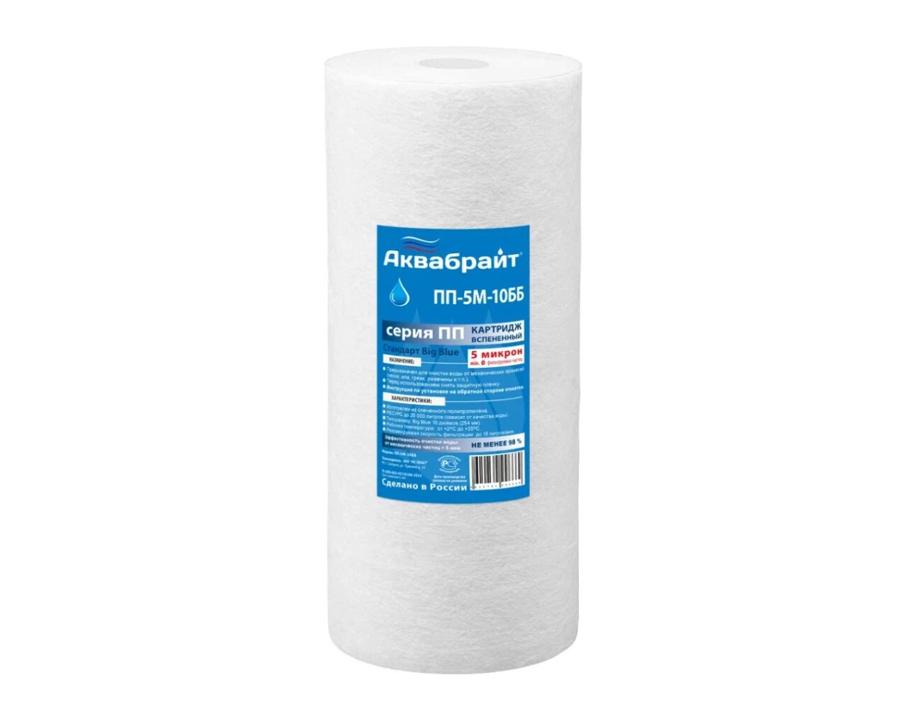 Картридж Аквабрайт ПП-5М-10ББ Big Blue, полипропилен, 5 микрон, 10"