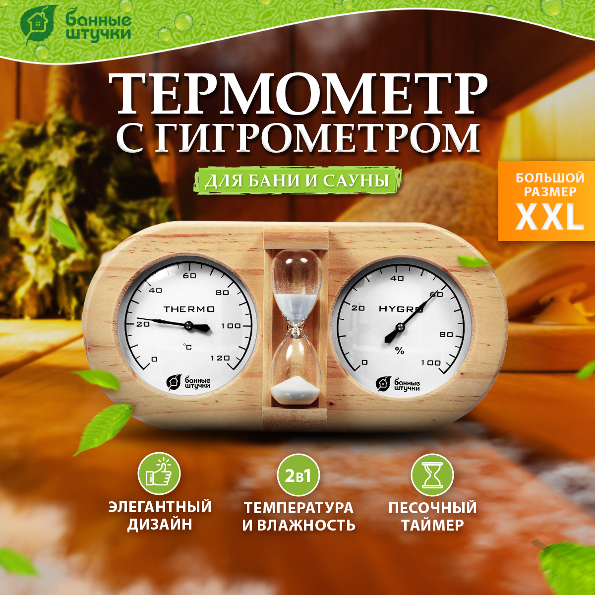 Термометр с гигрометром для бани Банные штучки Банная станция, с песочными часами