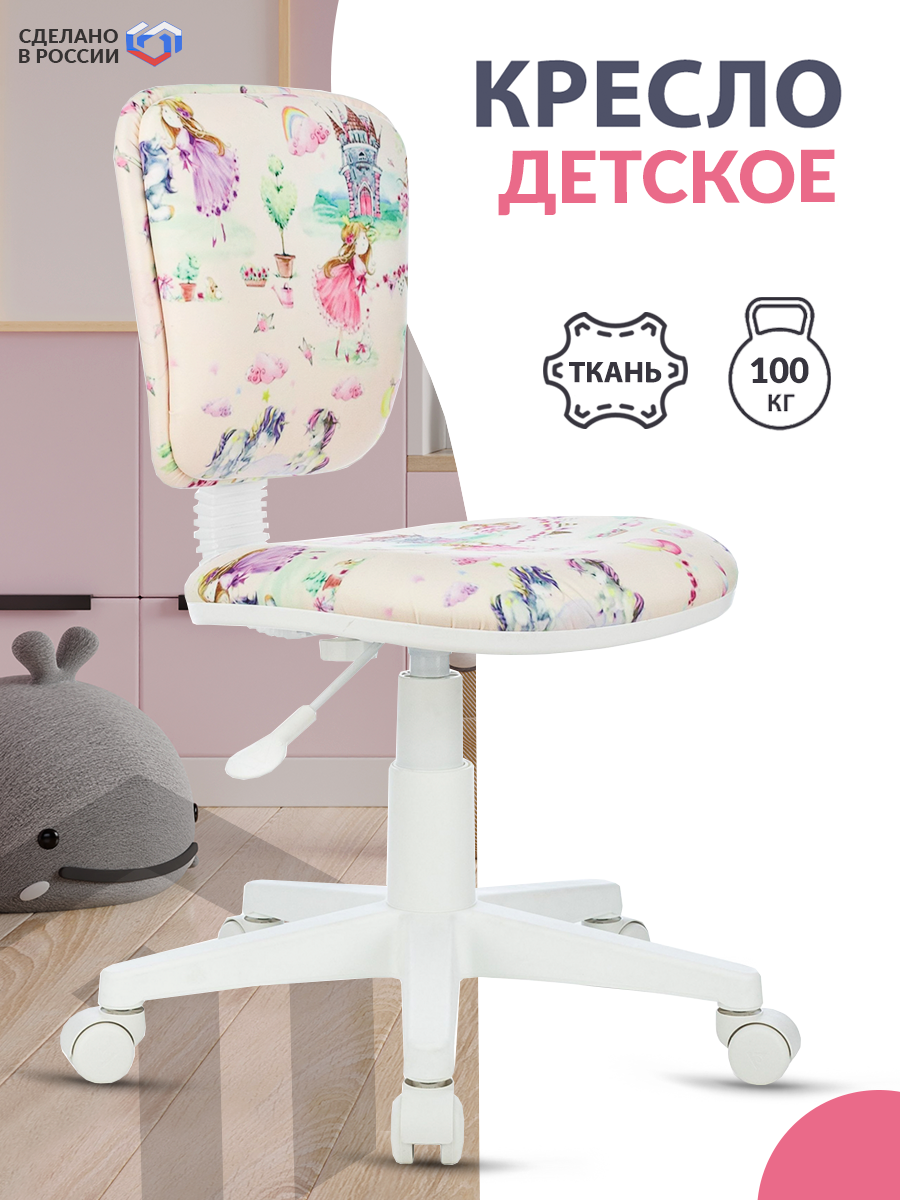 Кресло детское Бюрократ CH-W204NX мультиколор принцесски крестов. пластик белый / Компьютерное кресло для ребенка, школьника, подростка