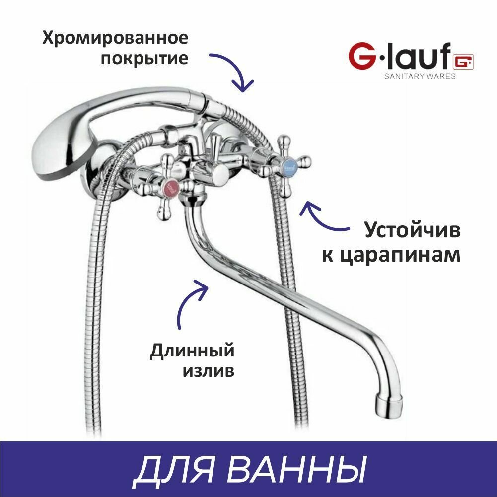 Смеситель для ванны с душем/ с длинным изливом/ двухвентильный / кран для ванной G.lauf JMX7-A605, цвет: хром