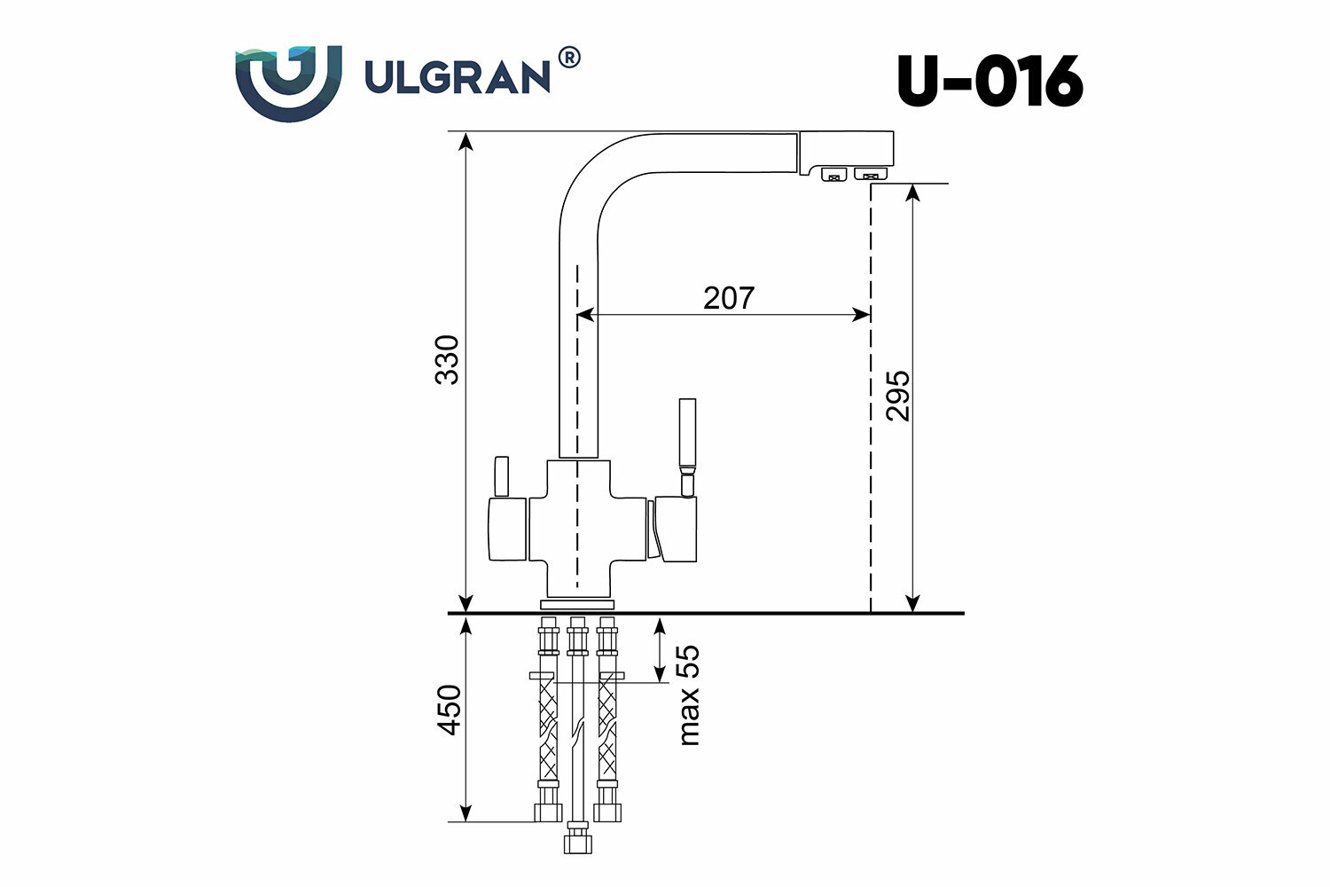 Смеситель для кухни Ulgran U-016-342, графит под фильтр