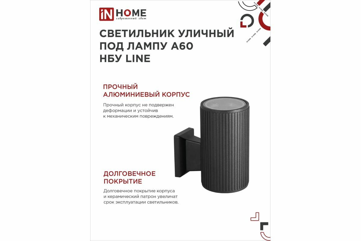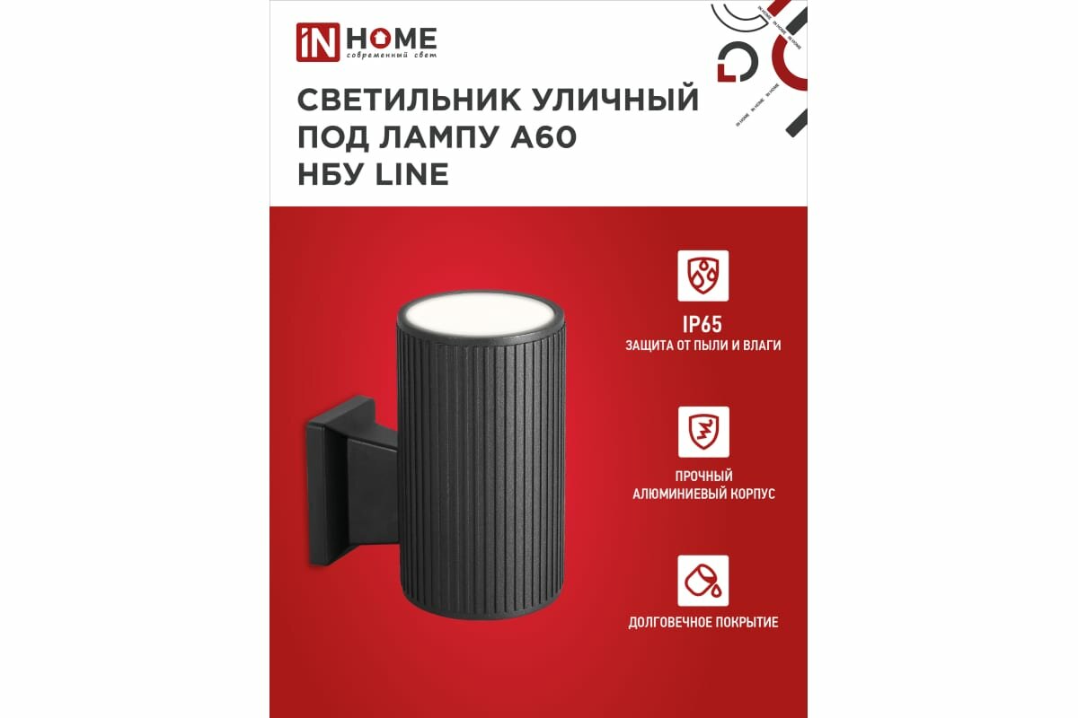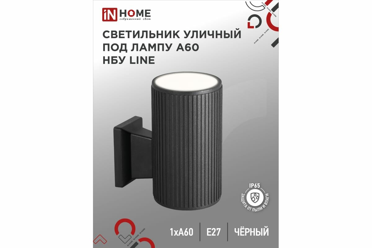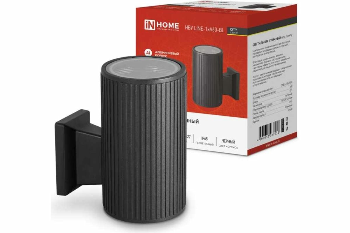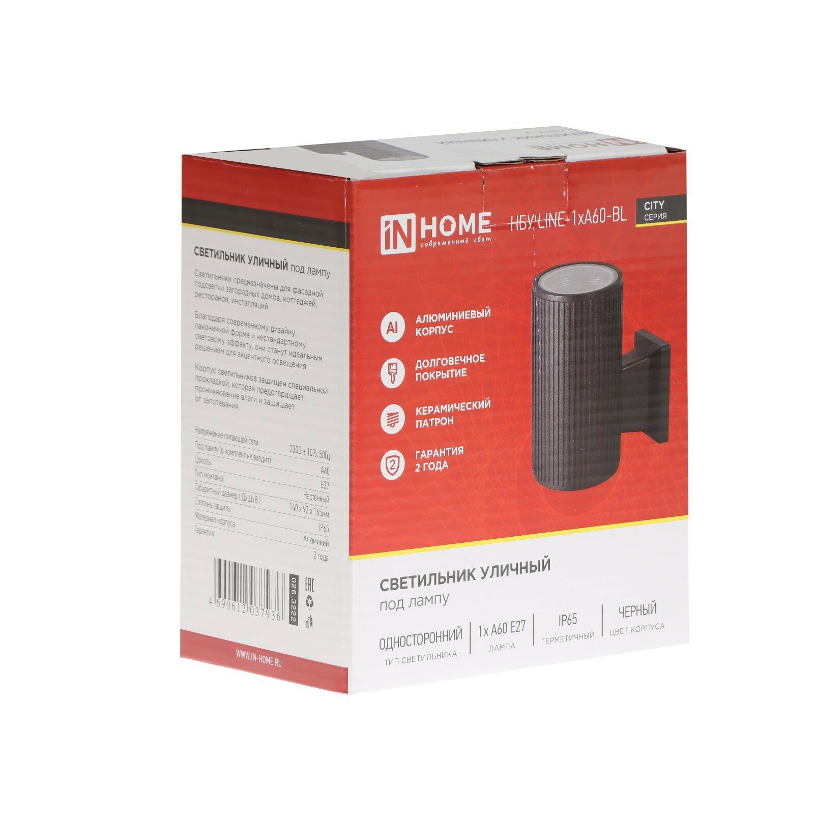 Светильник НБУ LINE-1хA60-BL E27 IP65 230В уличный настенный односторонний алюм. под лампу 1хA60 черн. IN HOME 4690612037936