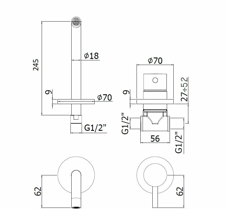Смеситель Paffoni, серии LIGHT, для раковины встраиваемый, накладки диам.70мм, излив 245мм, Хром LIG007CR70