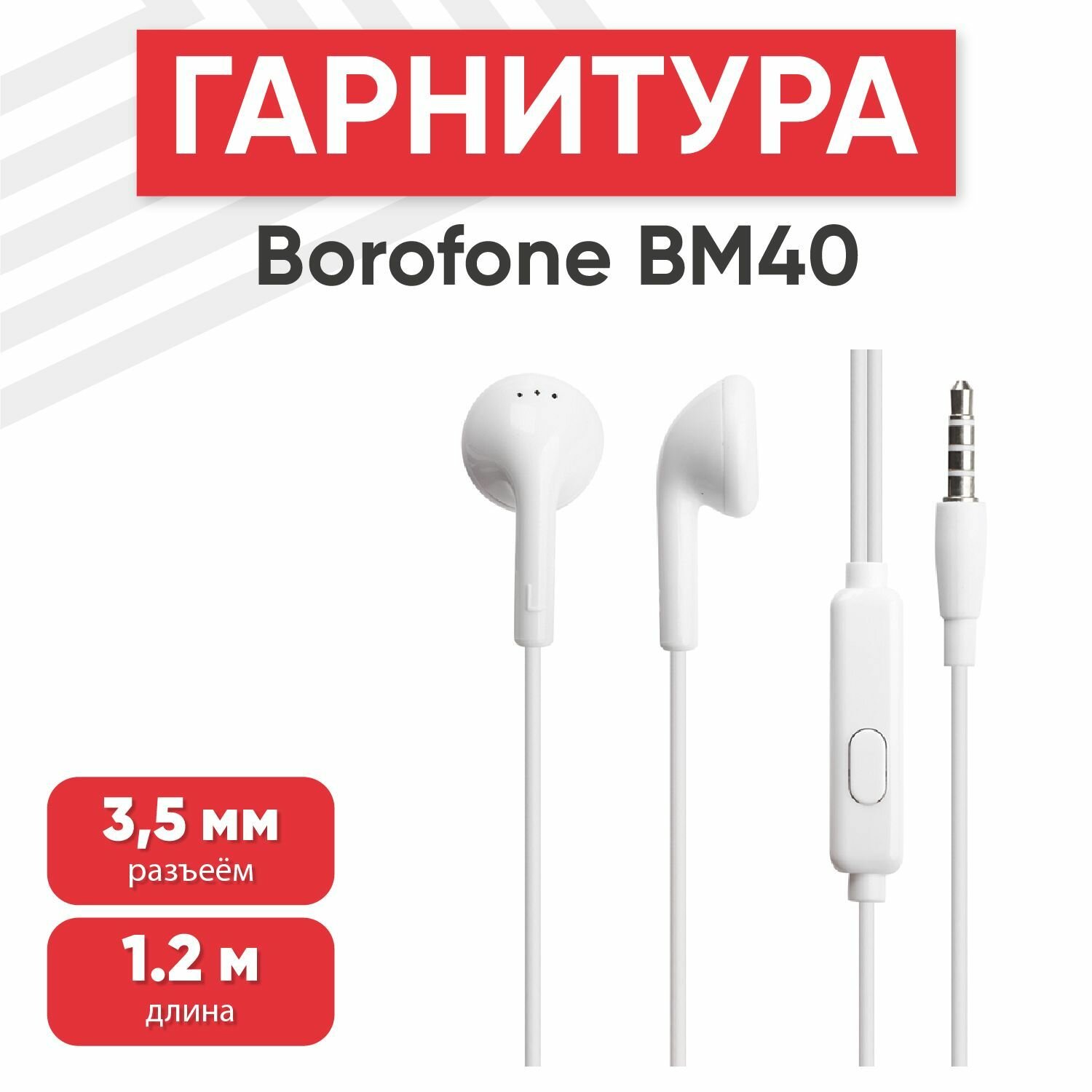 Гарнитура BOROFONE BM40 Sage 3.5 мм, вкладыши, 1.2м (белый)