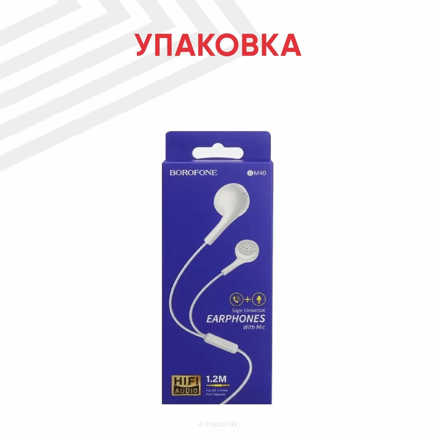 Купить Наушники проводные с микрофоном Borofone BM40 Sage, MiniJack 3.5мм, 1.2 метра, белые