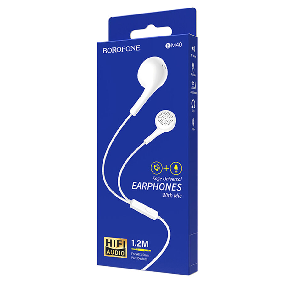 Проводные наушники BOROFONE BM40 Sage, Jack 3.5mm, 1.2 м, белый