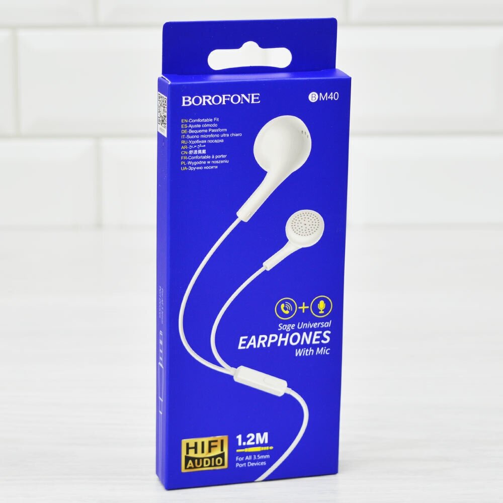 Ниже Вы можете прочитать отзывы на Наушники проводные с микрофоном Borofone BM40 Sage, MiniJack 3.5мм, 1.2 метра, белые, ознакомится с подробными характеристиками, посмотреть интересные обзоры и фотографии на Наушники проводные с микрофоном Borofone BM40 Sage, MiniJack 3.5мм, 1.2 метра, белые.
