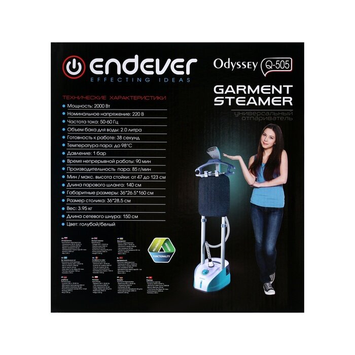 Отпариватель для одежды вертикальный напольный ENDEVER Odyssey Q-505 / 2000 Вт / 85 г/мин / 2л